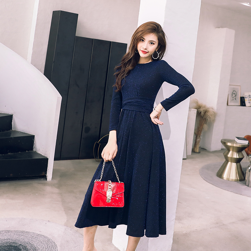 名媛氣質秋裝女2018新款打底裙收腰復古長裙長袖修身針織連衣裙潮