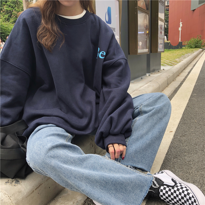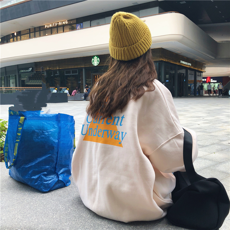 秋冬女裝韓版中長款原宿風寬松字母加絨加厚套頭超火衛衣上衣外套