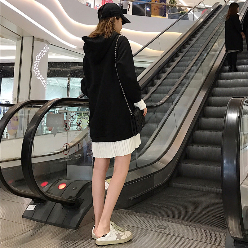 拼色假兩件衛衣2018新款女秋冬裝港風連帽長袖外套寬松慵懶上衣潮