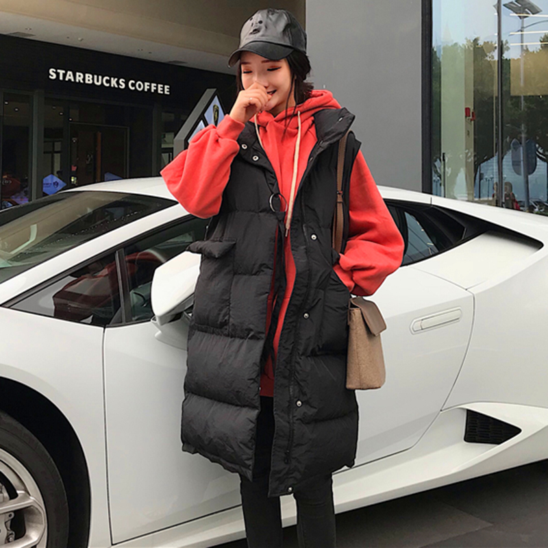 / 洋氣套裝女冬季2018新款寬松長袖連帽衛衣中長款坎肩棉衣馬甲外套