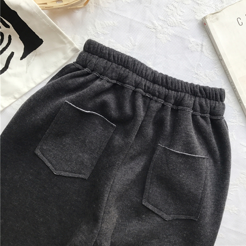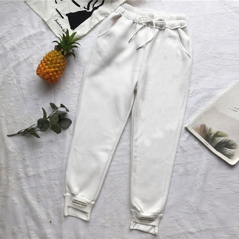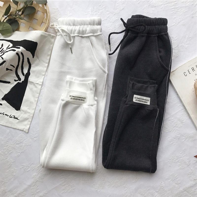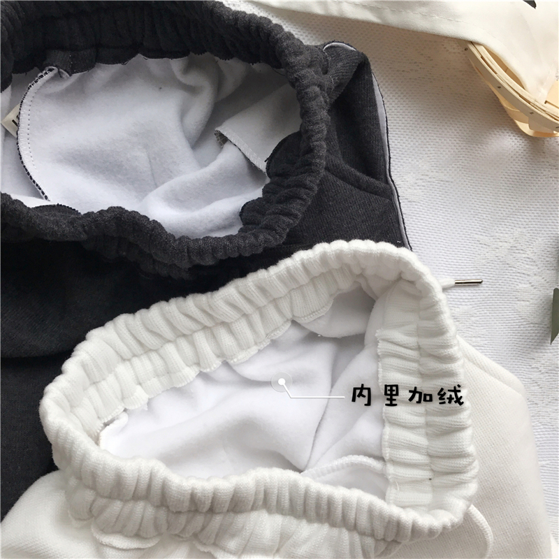 / 學院風寬松加絨運動休閑褲女秋冬裝新款韓版高腰顯瘦九分哈倫褲子