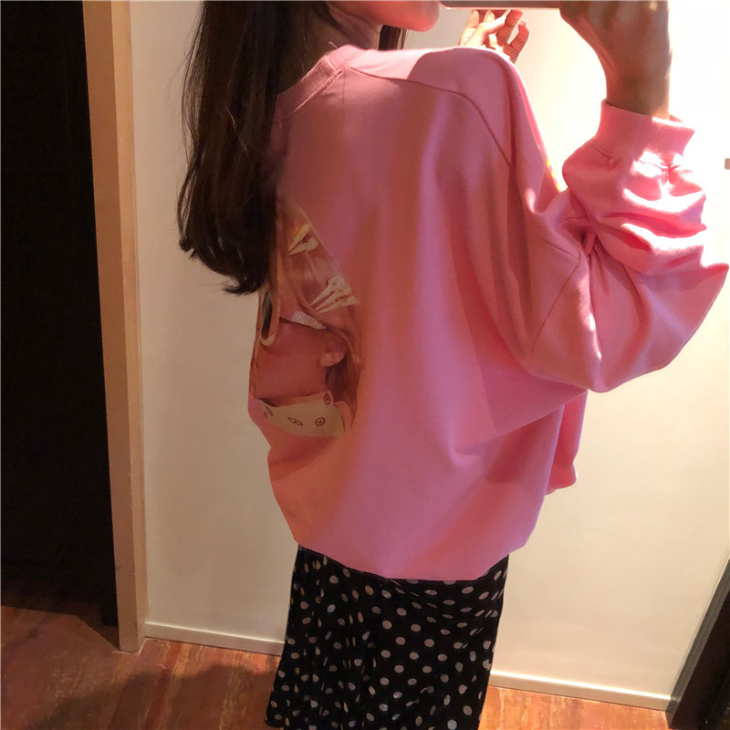 / 2018秋裝新款韓版上衣復古chic印花寬松小清新學生百搭氣質衛衣女