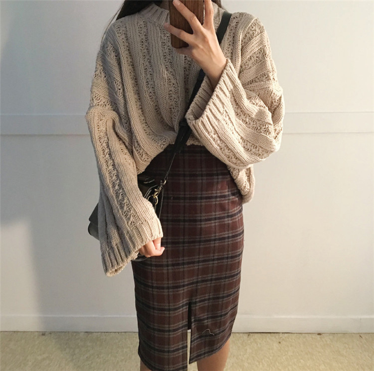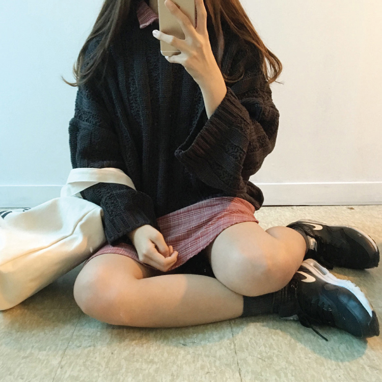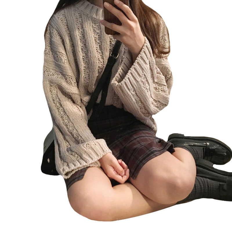 秋冬女裝韓版復古寬松百搭慵懶風圓領套頭長袖毛衣針織衫上衣外套