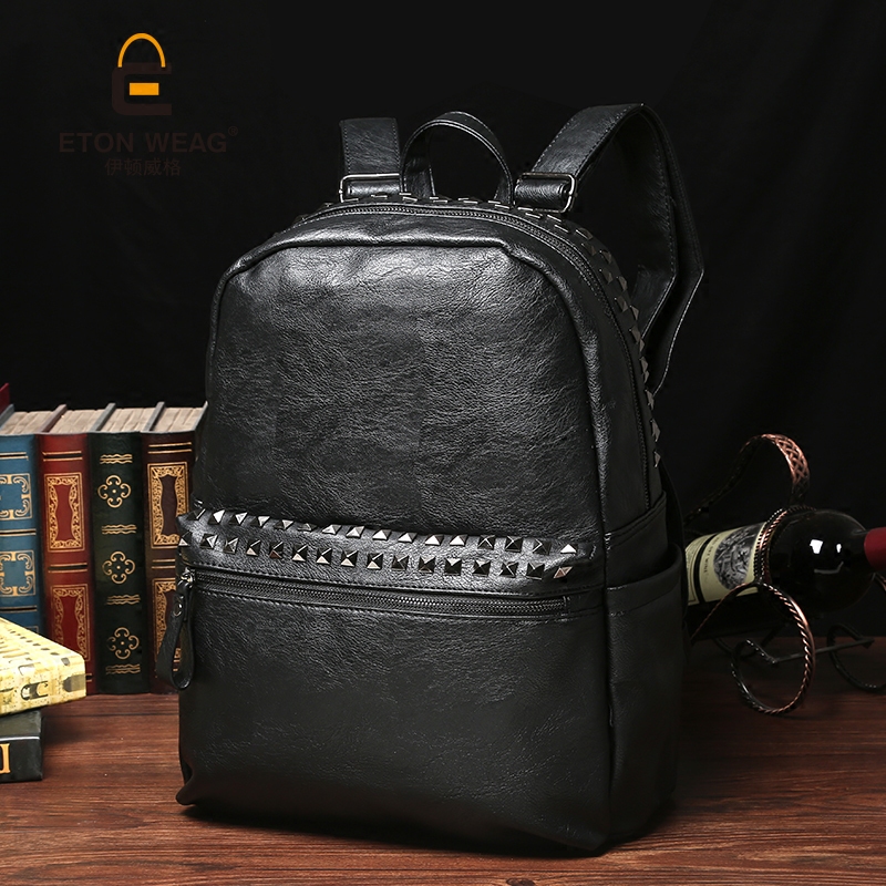 新款韓版鉚釘雙肩包男潮流女包背包學生書包復古休閑旅行包