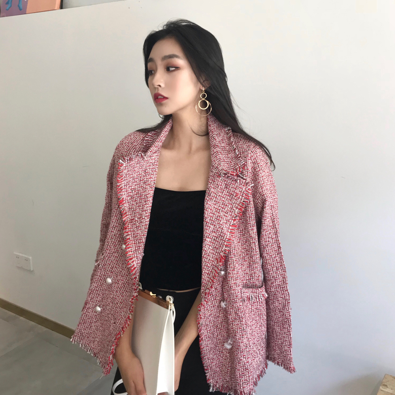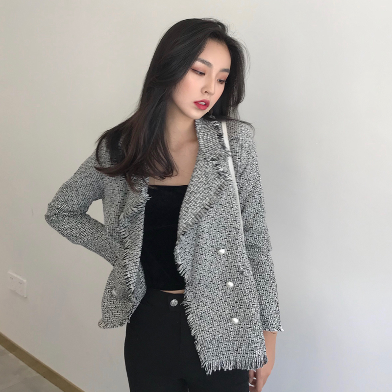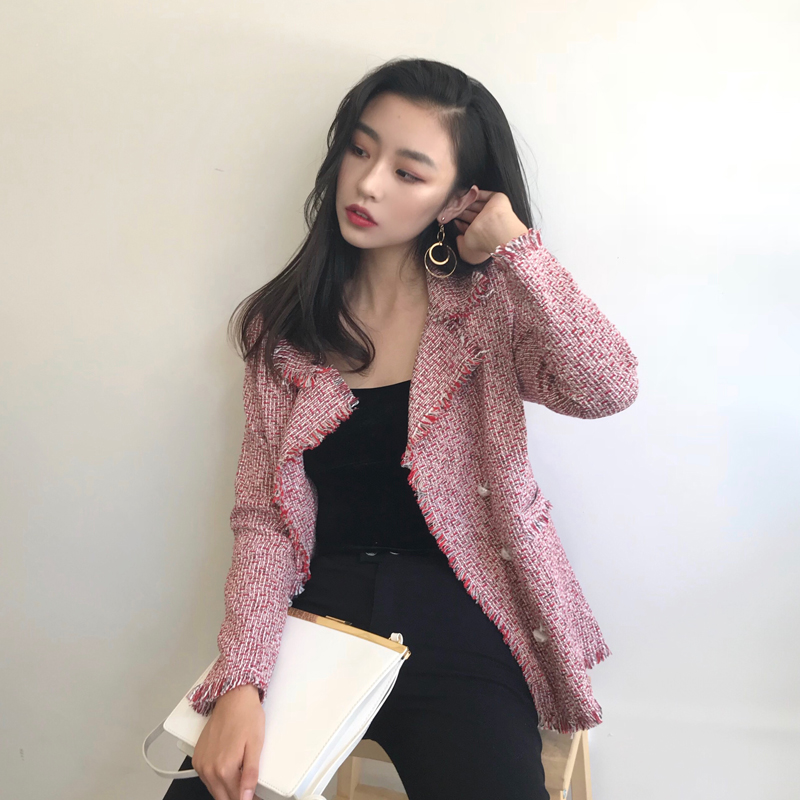 / 港味chic風翻領新款小香風復古外套上衣修身顯瘦休閑流蘇邊西裝女