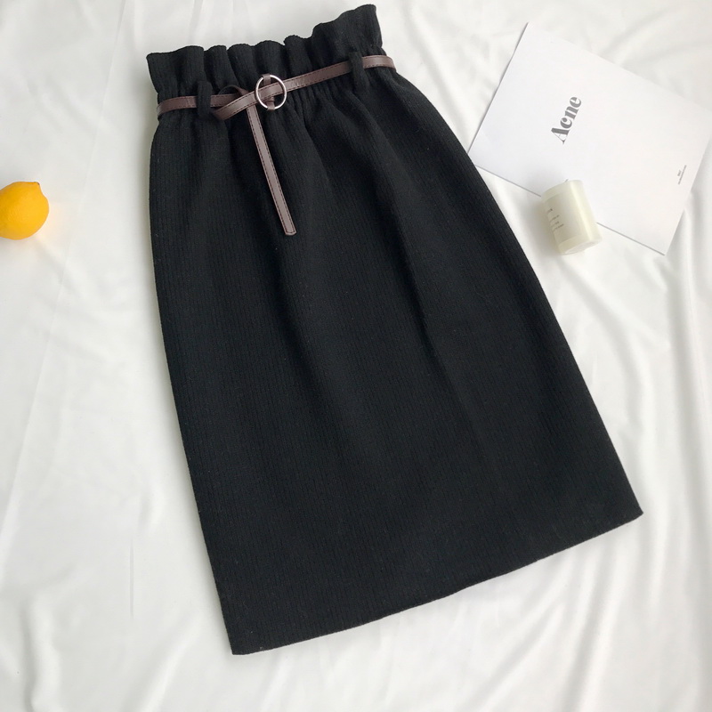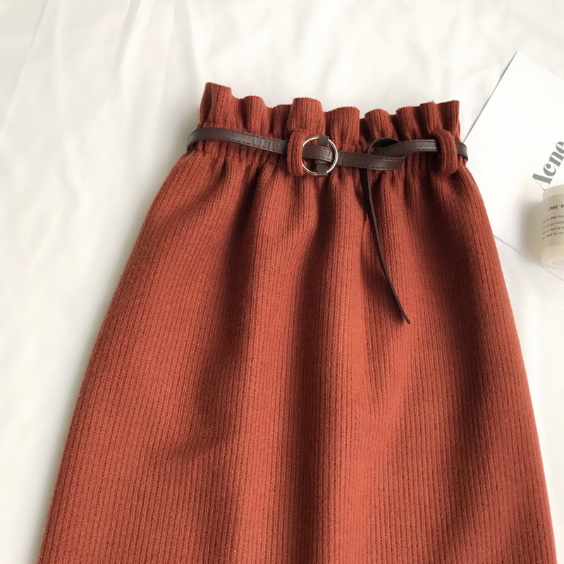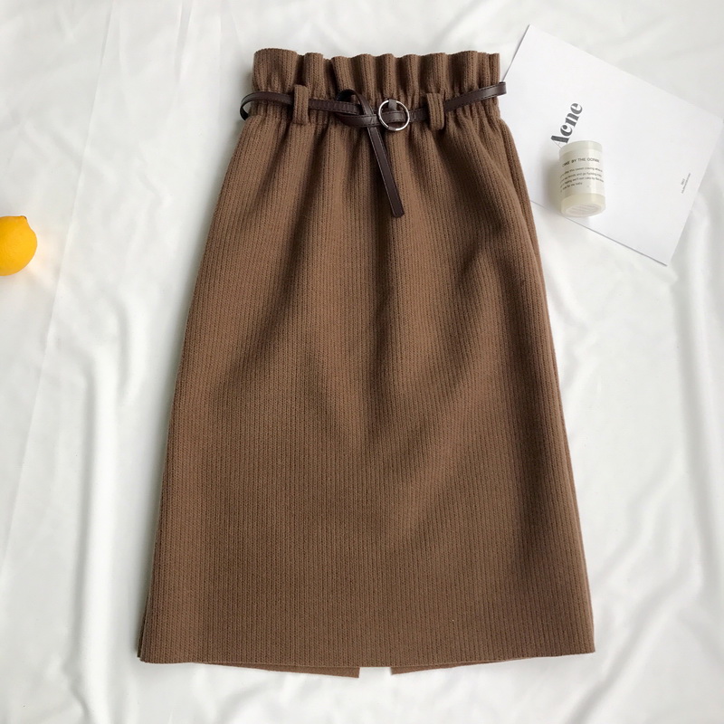 中長款毛呢裙子秋冬裝女2018新款韓版氣質松緊高腰A字開叉半身裙