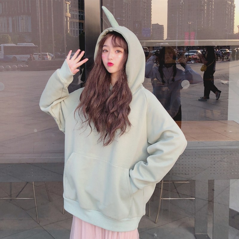 / 2018新款秋冬女裝韓版寬松連帽加絨加厚套頭pp home超火衛衣外套