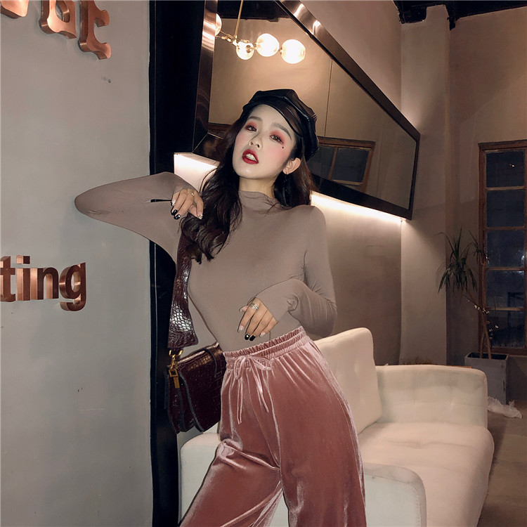 韓版秋裝女2018新款chic顯瘦長袖高領T恤打底衫彈力百搭休閑上衣