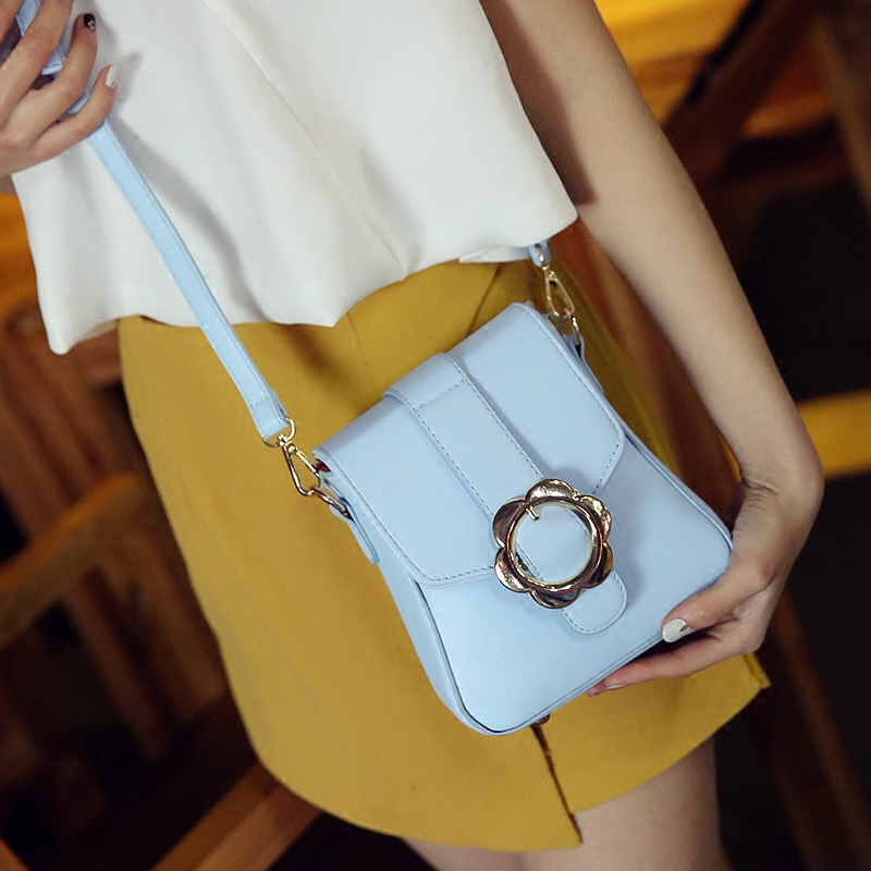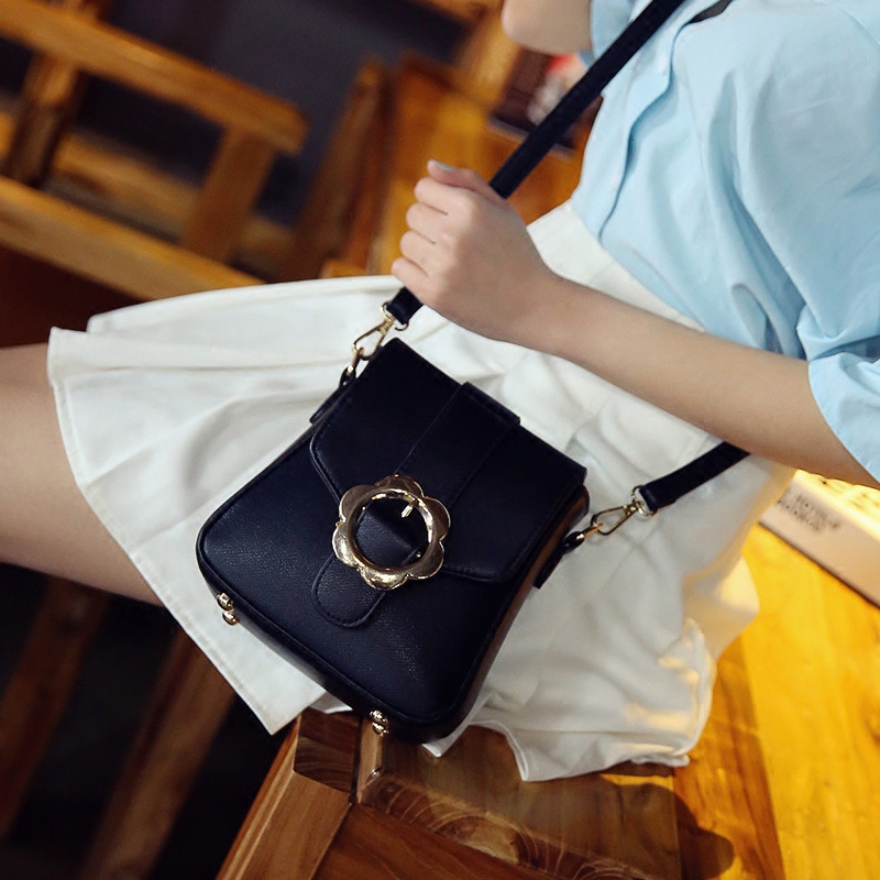 / 新款潮韓版個性花扣小包包女時尚百搭斜挎單肩女包迷你小方包