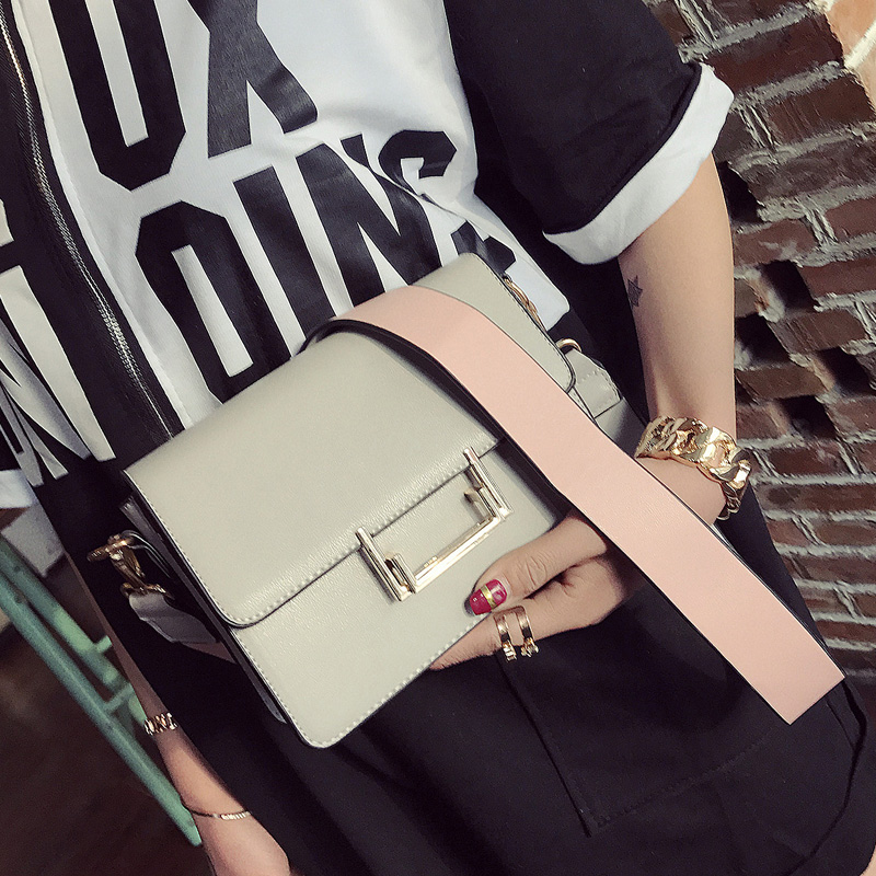 包包女新款潮撞色寬肩帶單肩女包小包韓版百搭斜挎鎖扣小方包