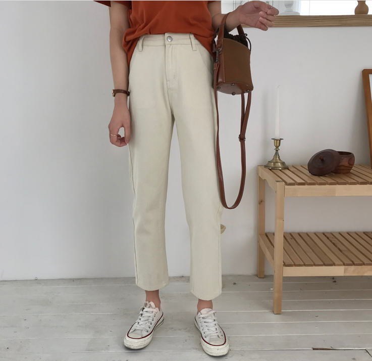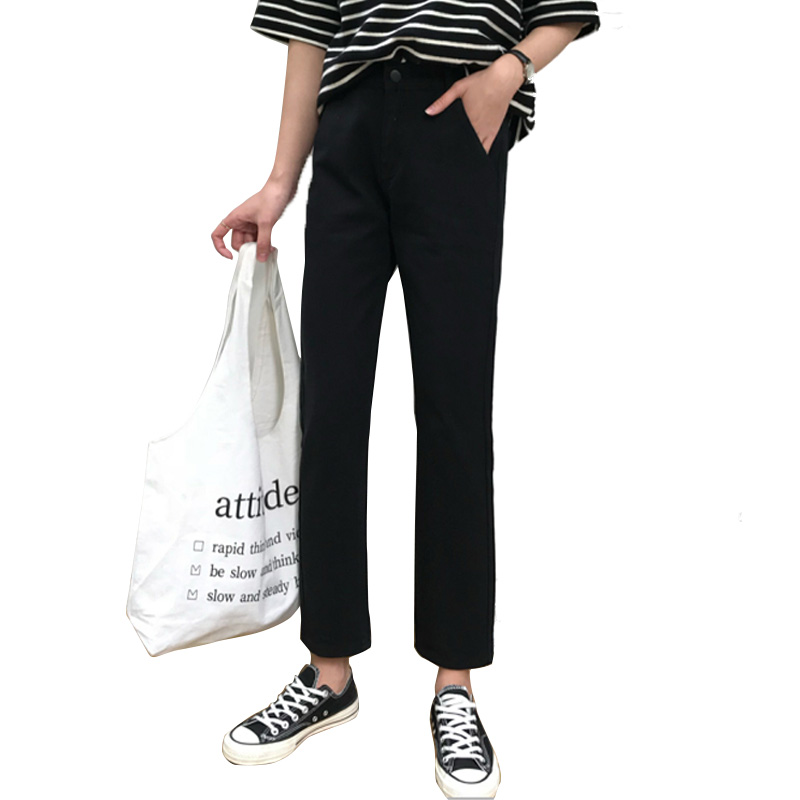 / 秋裝女裝韓版高腰寬松直筒褲九分褲顯瘦黑色牛仔褲闊腿褲長褲學生