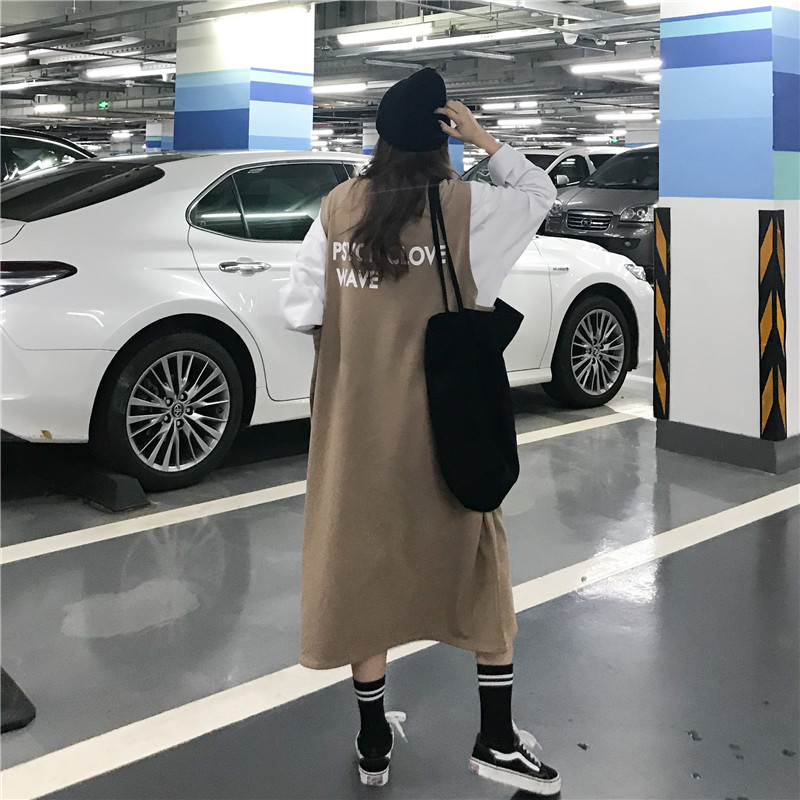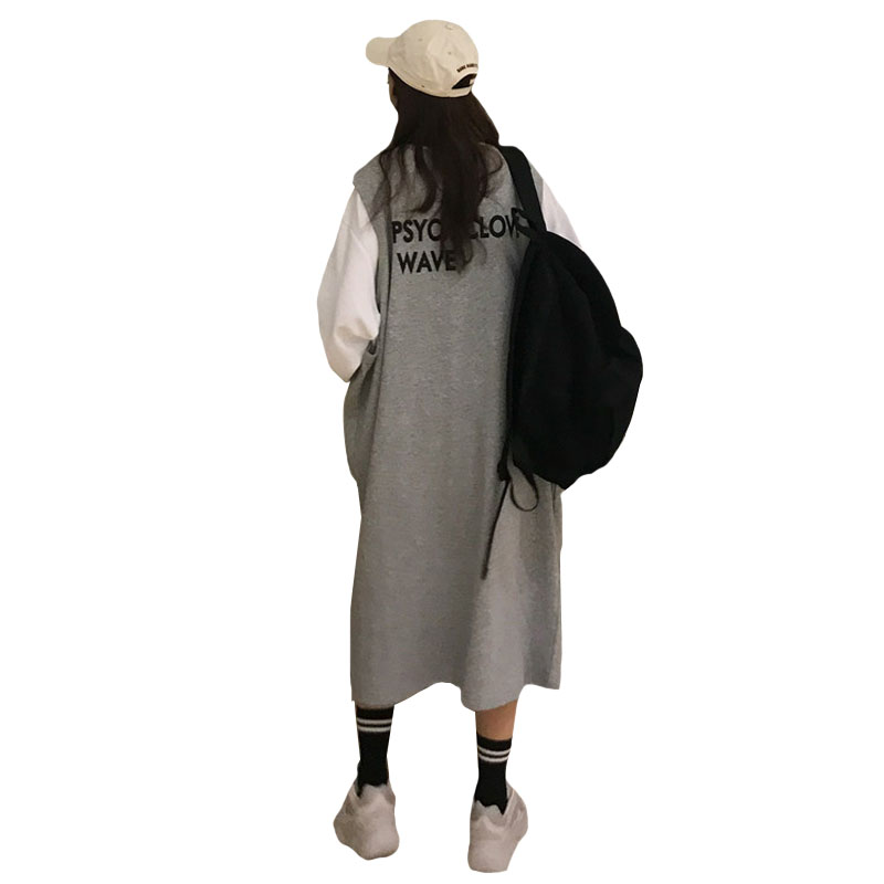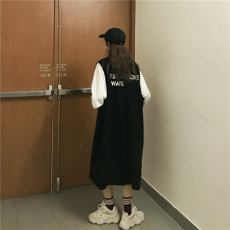 / 韓版時尚休閑套裝秋季女裝純色長袖T恤+字母無袖背心連衣裙兩件套