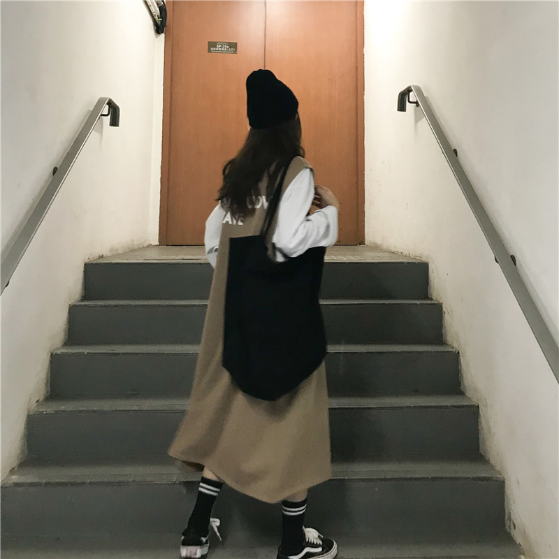 花灰背心裙單件|黑色背心裙單件|卡其背心裙單件|長袖T恤單件