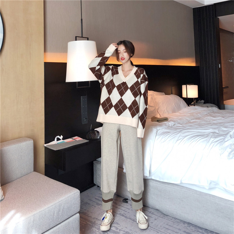 / 港味時尚毛呢褲女秋冬2018新款寬松九分休閑蘿卜褲高腰直筒哈倫褲