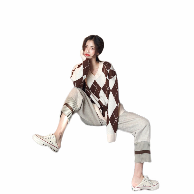港味時尚毛呢褲女秋冬2018新款寬松九分休閑蘿卜褲高腰直筒哈倫褲