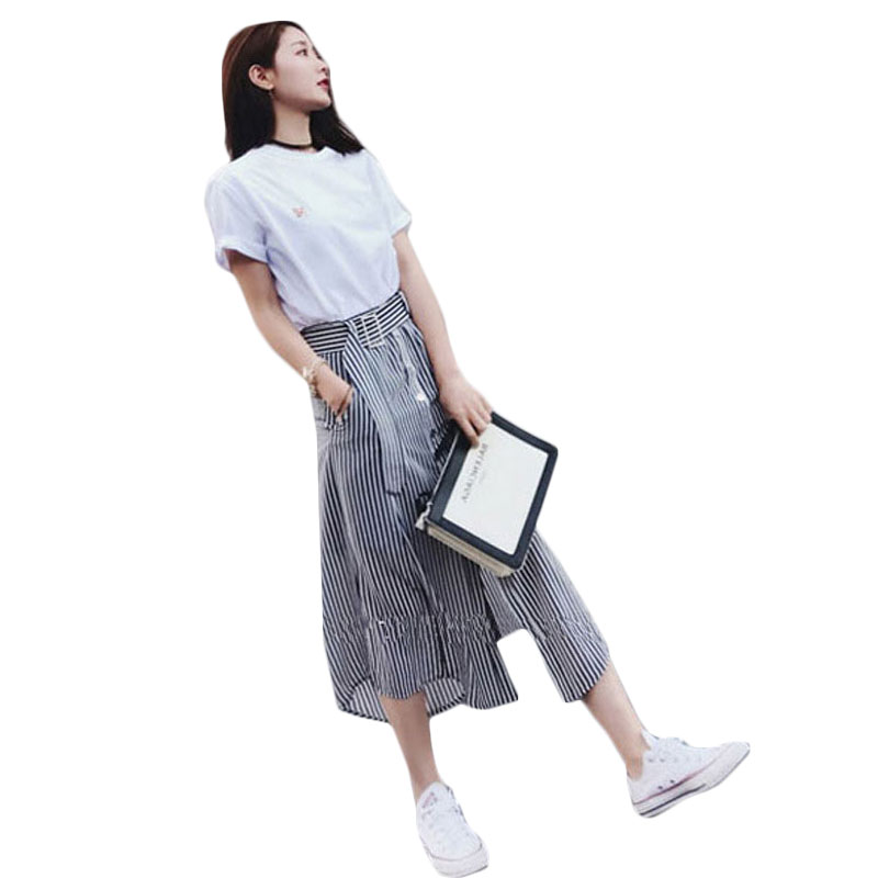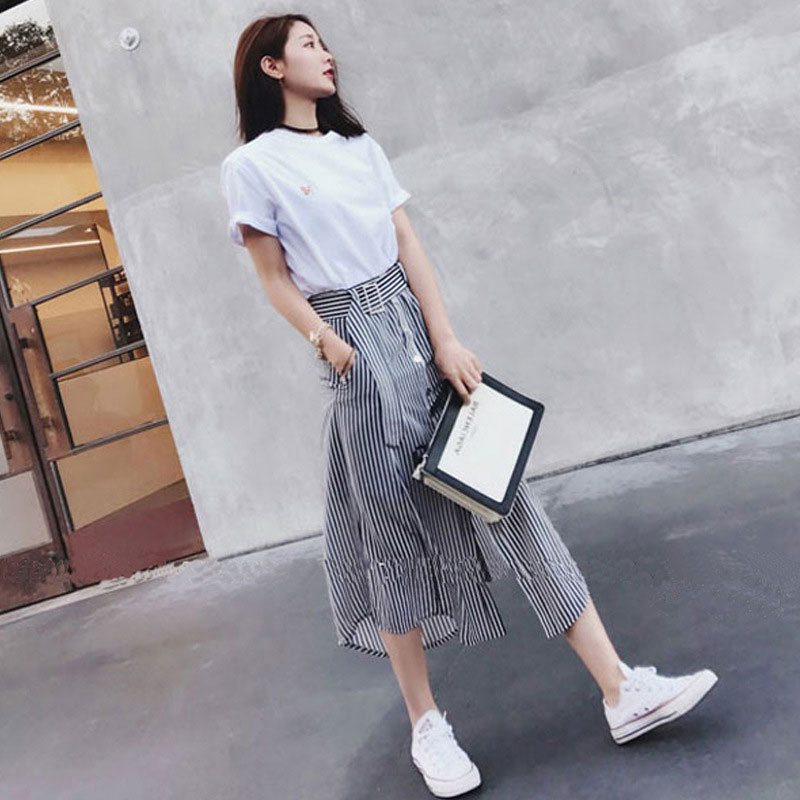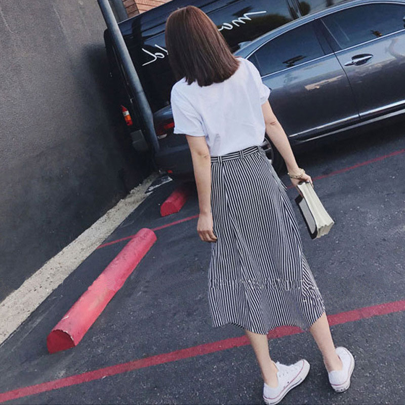 6012白色上衣+條紋裙