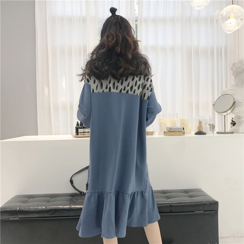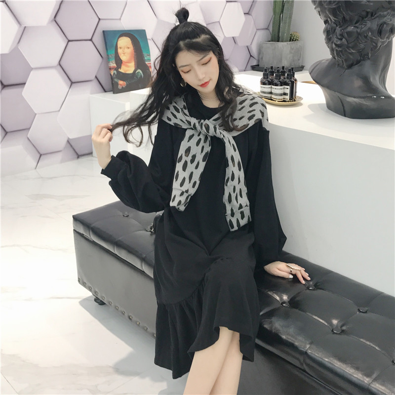 秋裝女2018新款韓版拼接假兩件荷葉邊連衣裙時尚燈籠長袖中長裙子