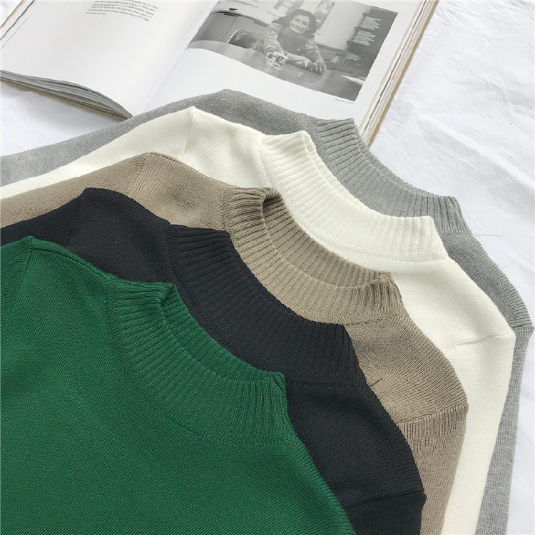 / 秋冬韓版chic半高領加絨加厚修身網紅套頭打底衫針織衫毛衣上衣女