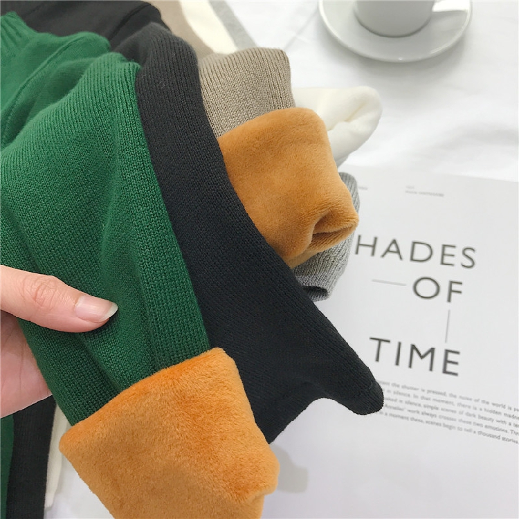 秋冬韓版chic半高領加絨加厚修身網紅套頭打底衫針織衫毛衣上衣女