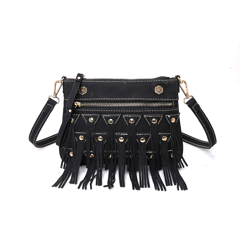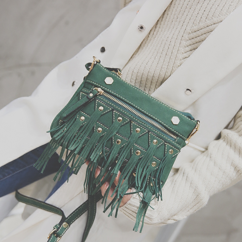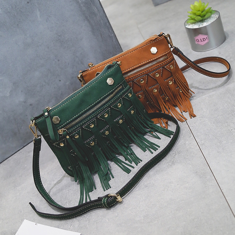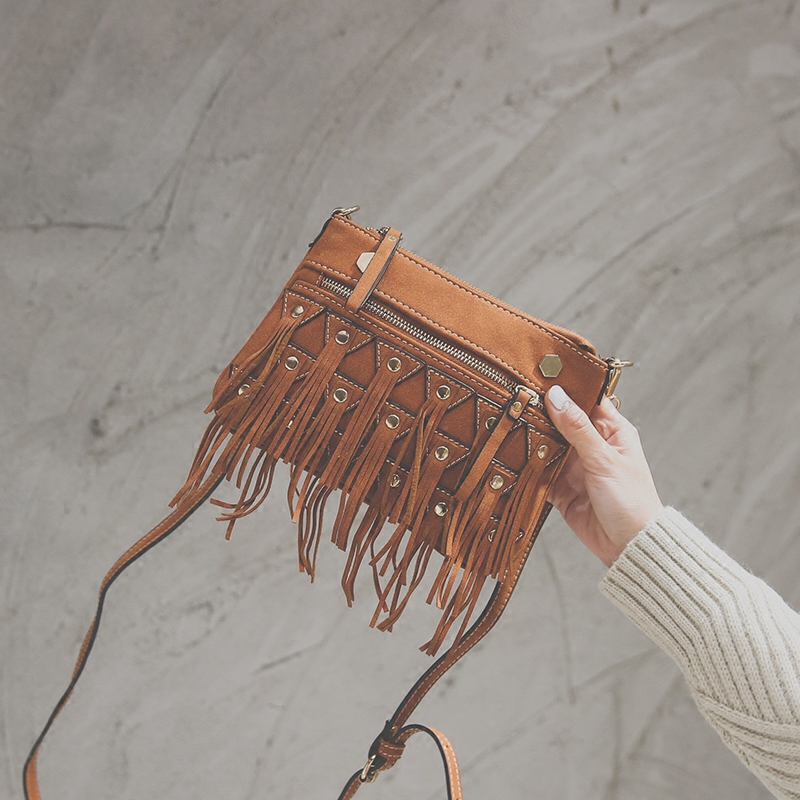 / 新款韓版個性鉚釘流蘇小包包復古磨砂斜挎包女休閑百搭單肩包