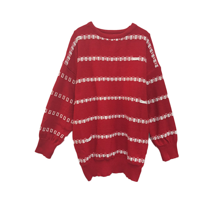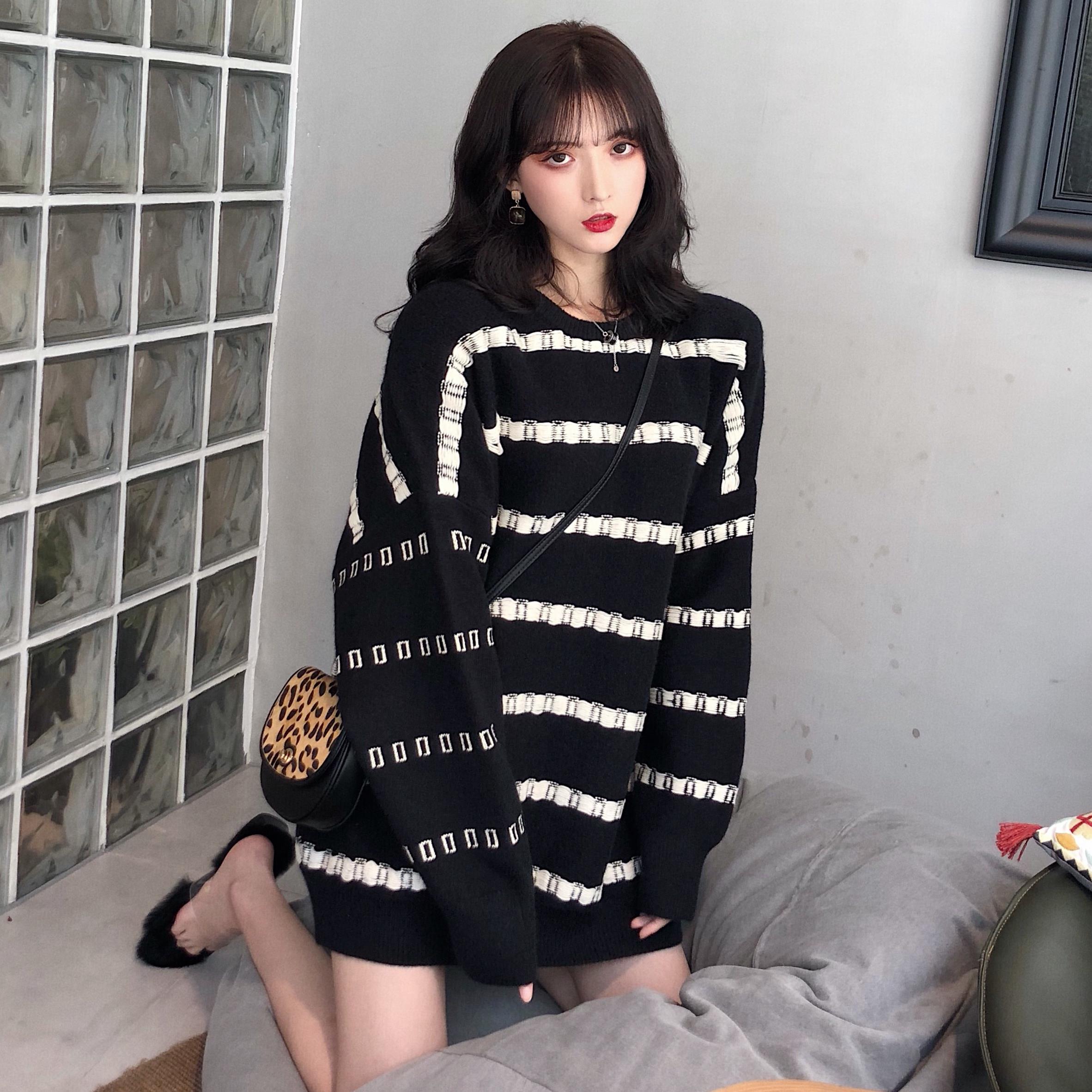 韓版百搭慵懶風毛衣女2018新款寬松oversize條紋中長款毛線上衣潮