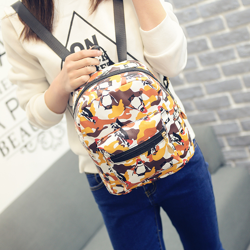 2016新款企鵝迷彩雙肩包韓版休閑潮小背包時尚百搭學院風旅行包包