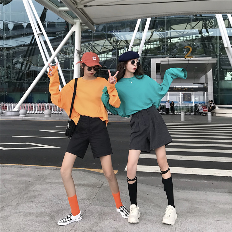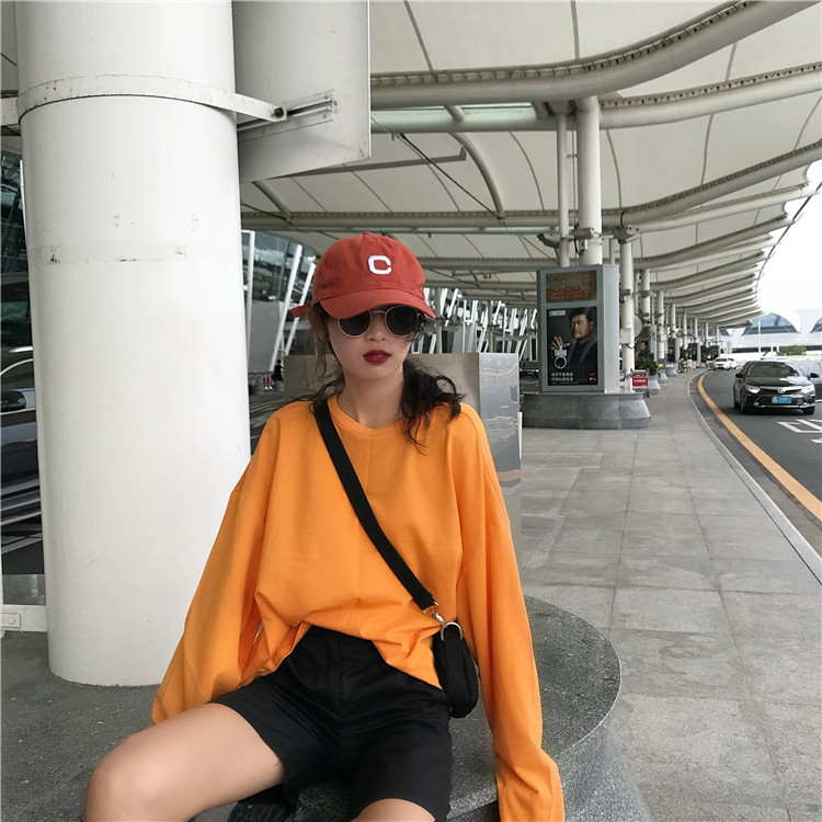 秋天上衣女新款時尚百搭基礎寬松馬卡龍純色圓領中長款T恤10色入