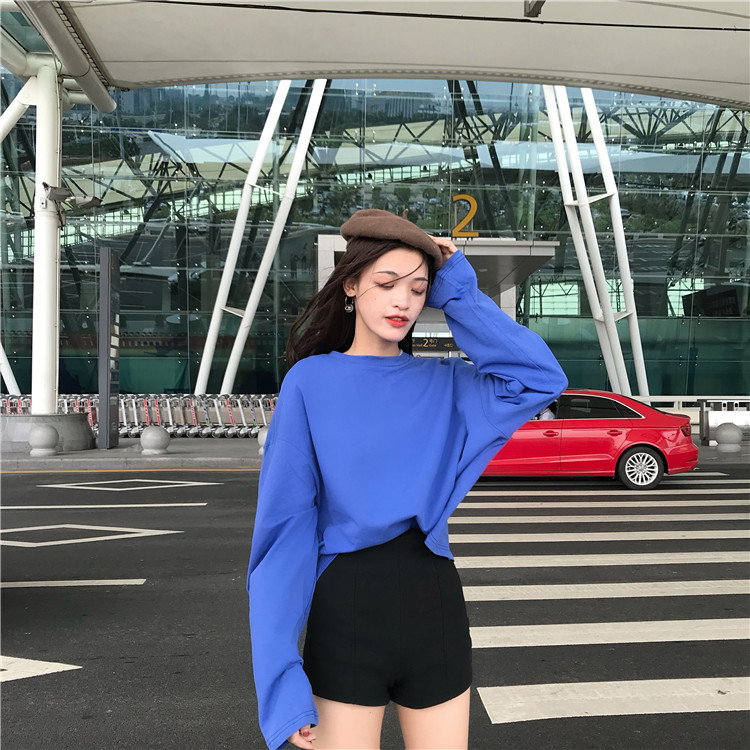 韓版時尚休閑秋裝女2018新款氣質百搭純色T恤打底衫修身顯瘦上衣