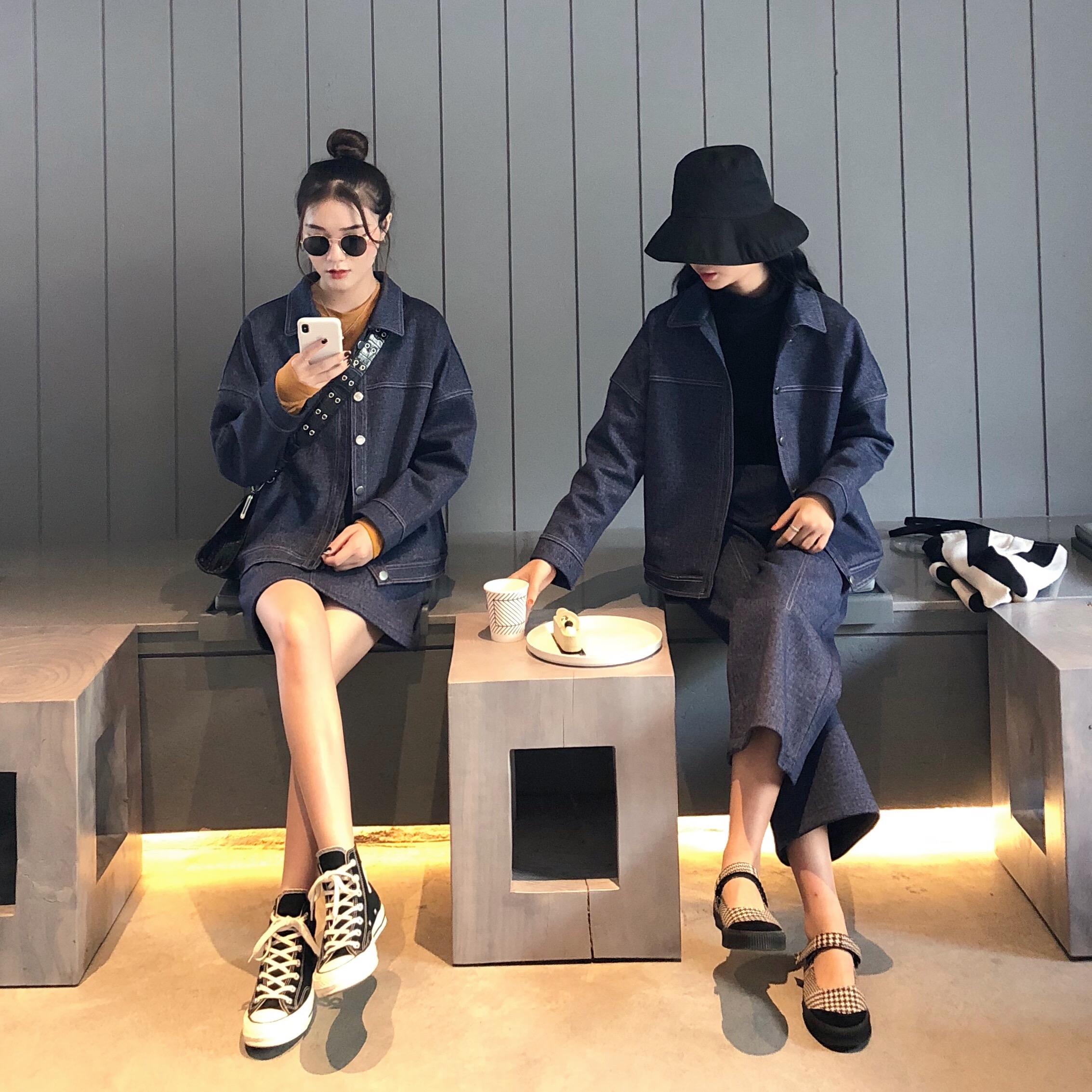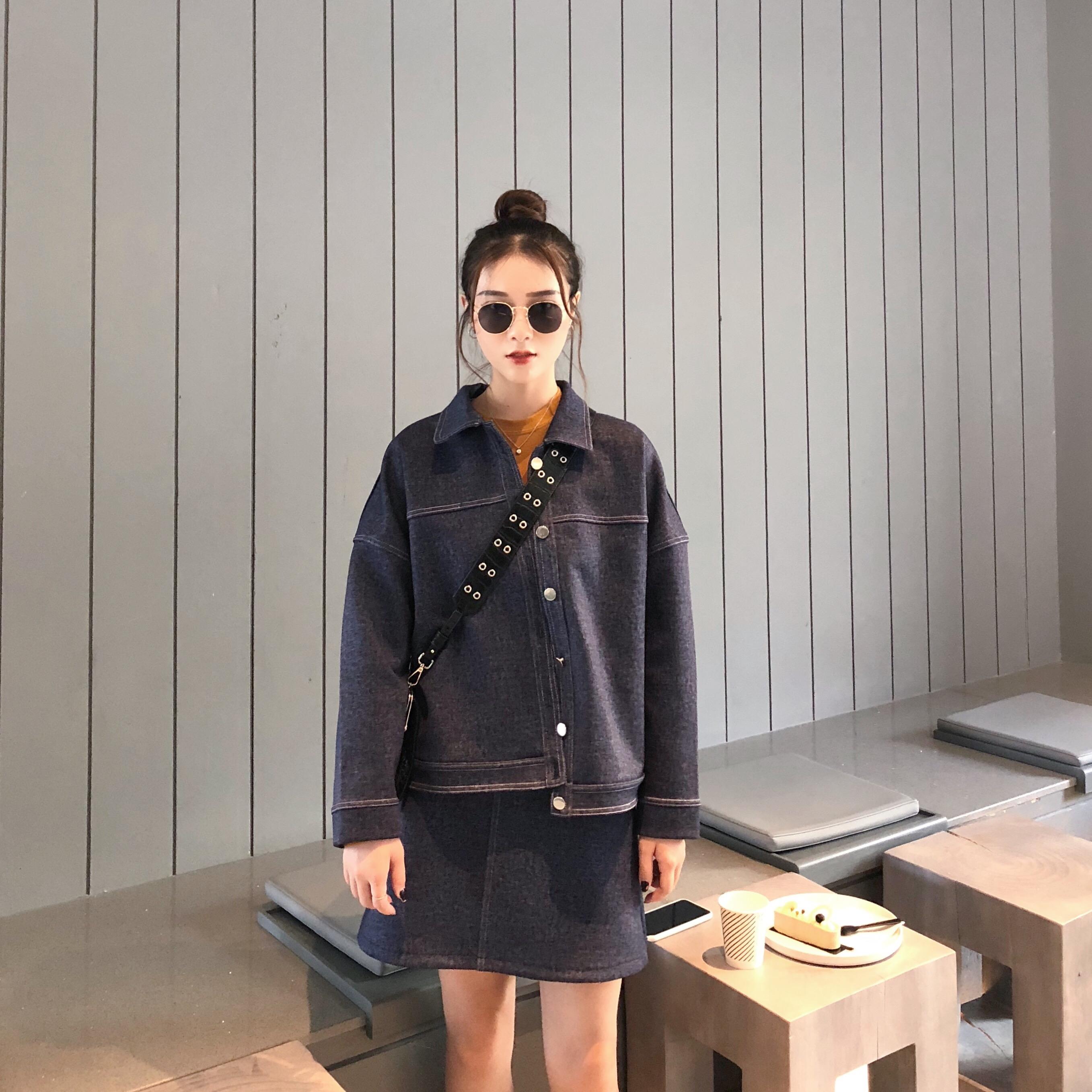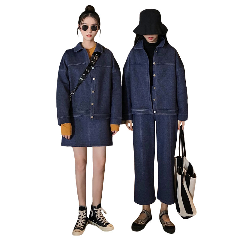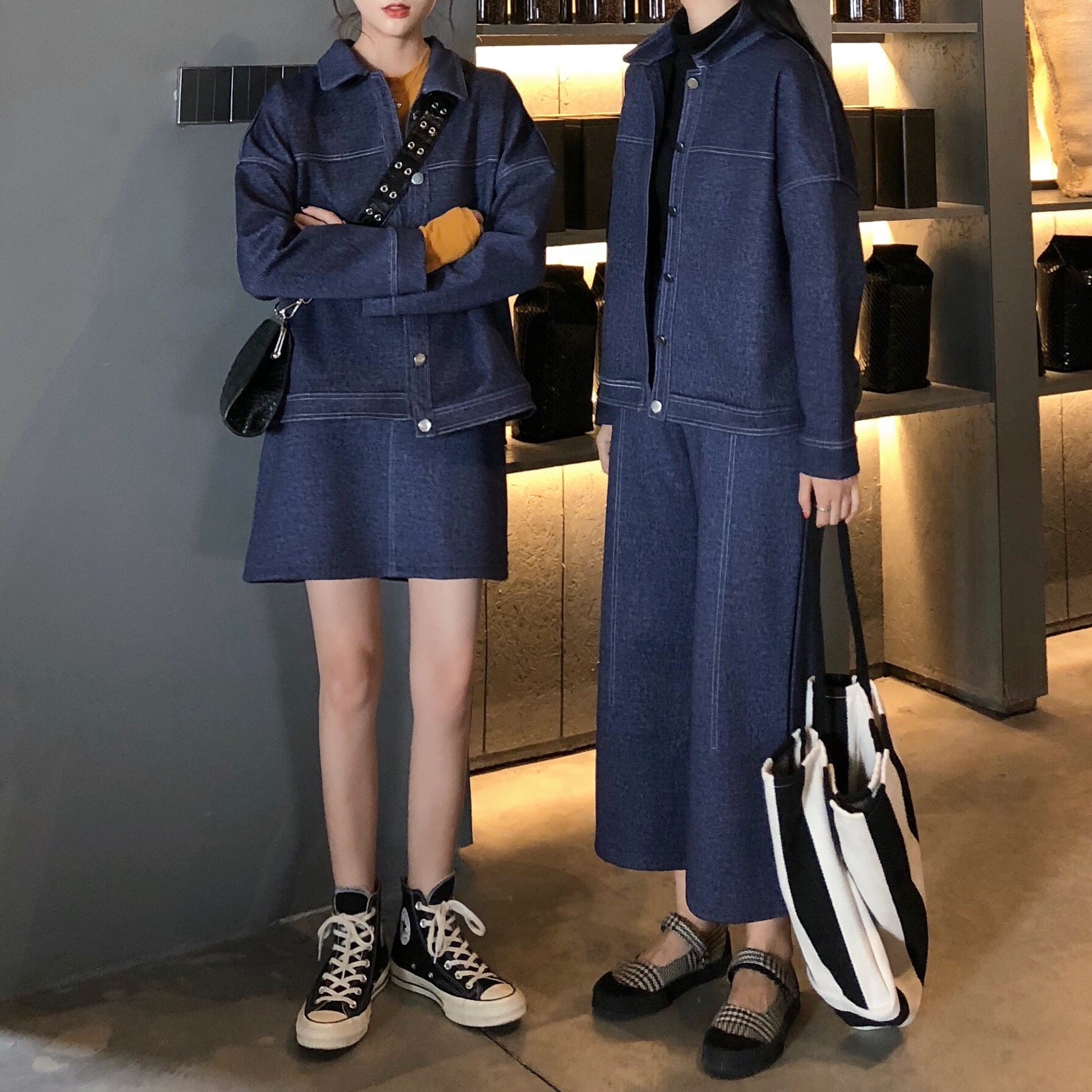/ 韓版時尚休閑套裝秋季女裝帥氣牛仔外套+短裙+闊腿褲九分褲三件套