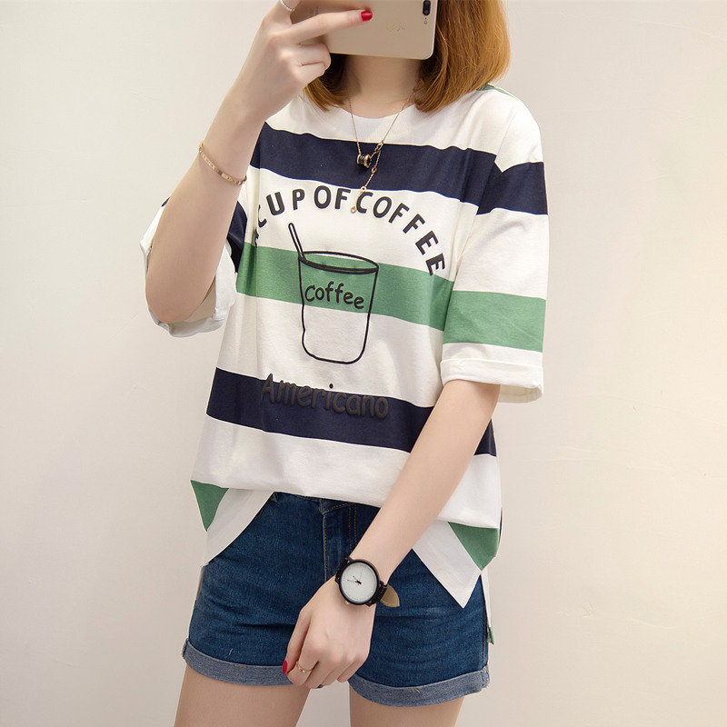 / 條紋短袖t恤女寬松韓版學生百搭bf風體恤小清新上衣夏裝新款