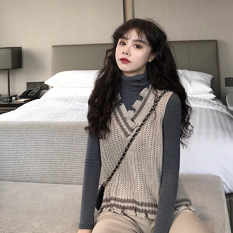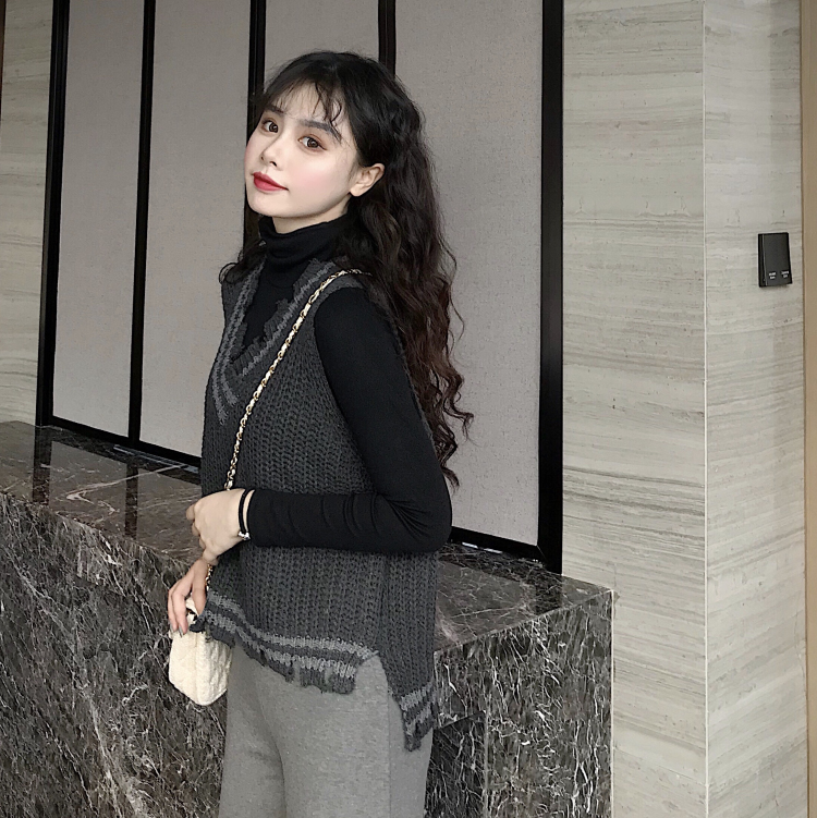 馬甲V領設計隨意輕松 可以搭配襯衣或者各種打底衫