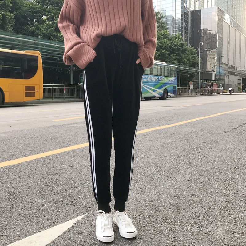 2018新款秋冬韓版加厚加絨哈倫褲寬松運動褲休閑褲長褲學生褲子女