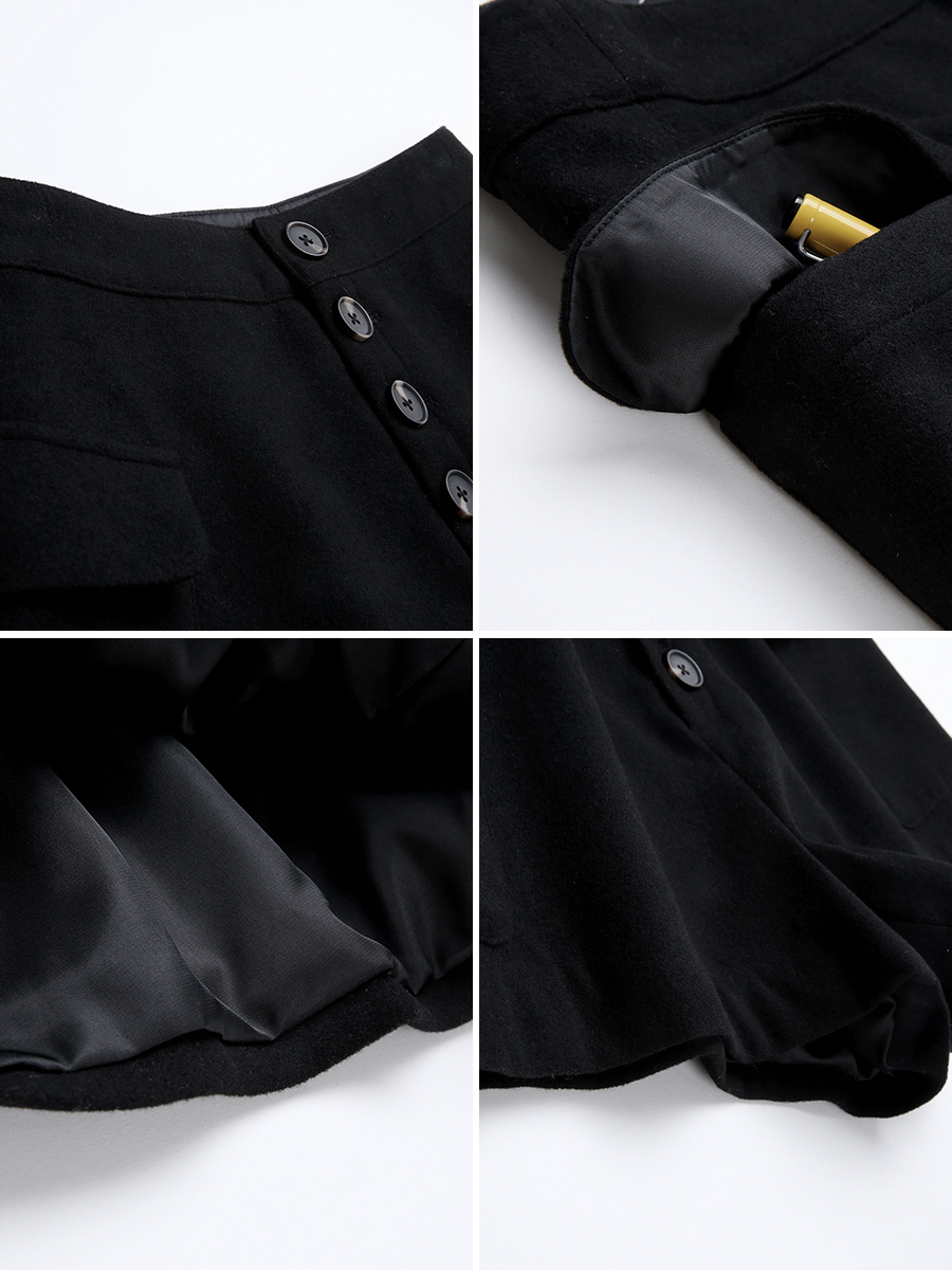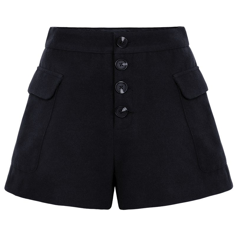 MG小象呢子闊腿短褲女秋冬新款黑色顯瘦直筒褲港味復古chic褲子潮