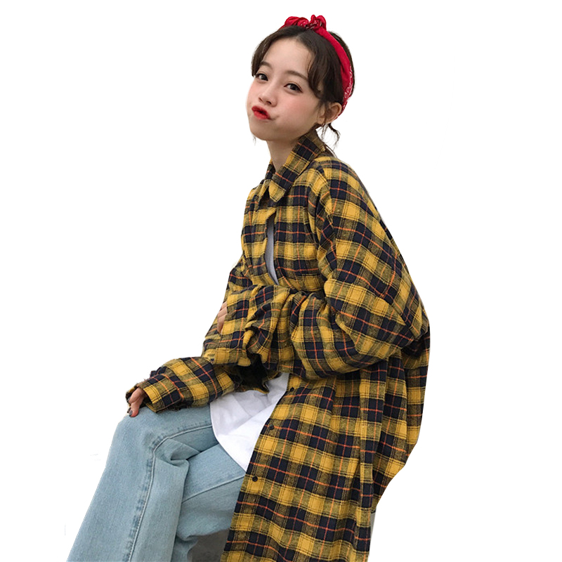 秋裝女裝2018新款韓版寬松顯瘦中長款格子襯衫休閑長袖襯衣上衣潮