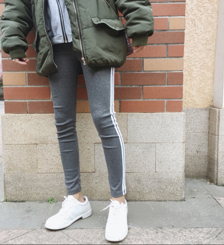 / 韓國秋冬款時尚百搭三道扛休閑褲長褲修身顯瘦打底褲女外穿