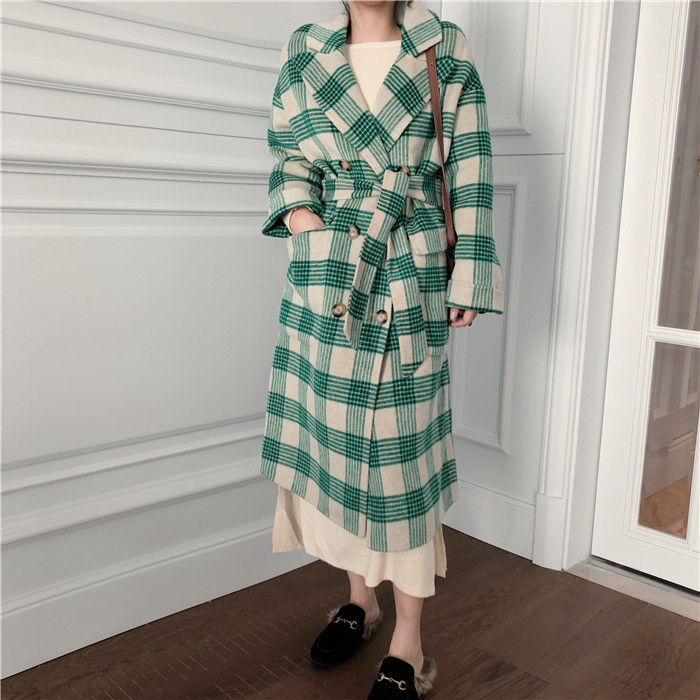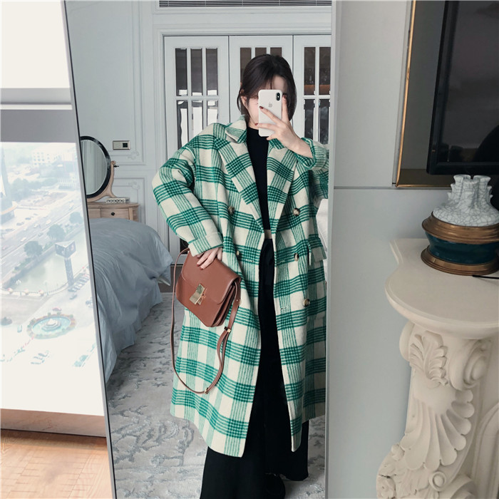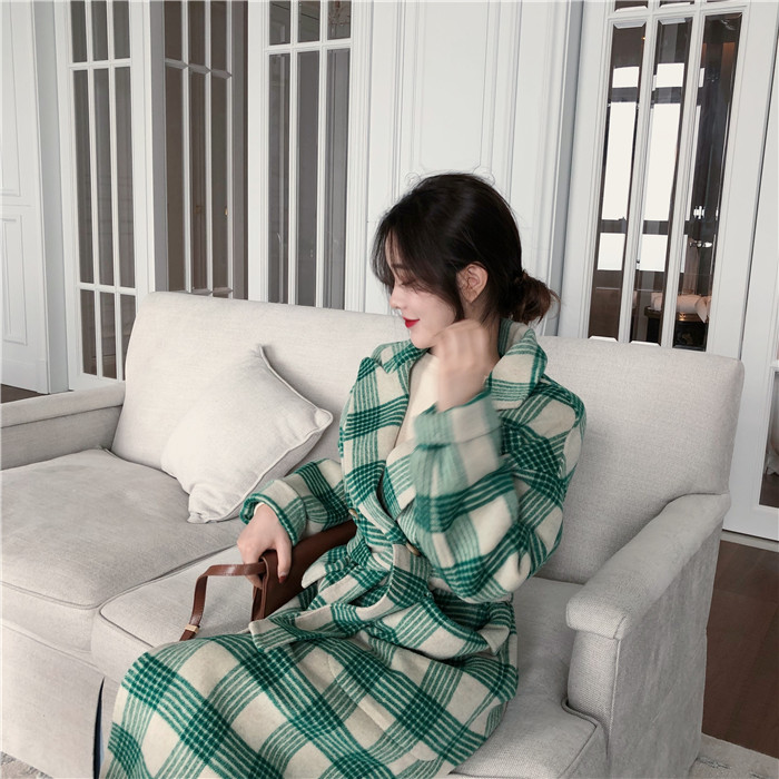復古毛呢外套女冬季大衣女新款2018韓版氣質時尚格子呢子上衣外套