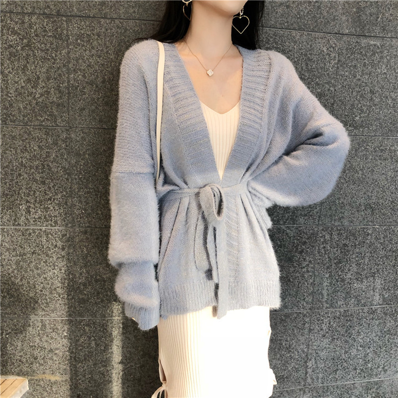 / 2018秋季新款百搭寬松開衫中長款外套女V領針織打底裙時尚套裝潮