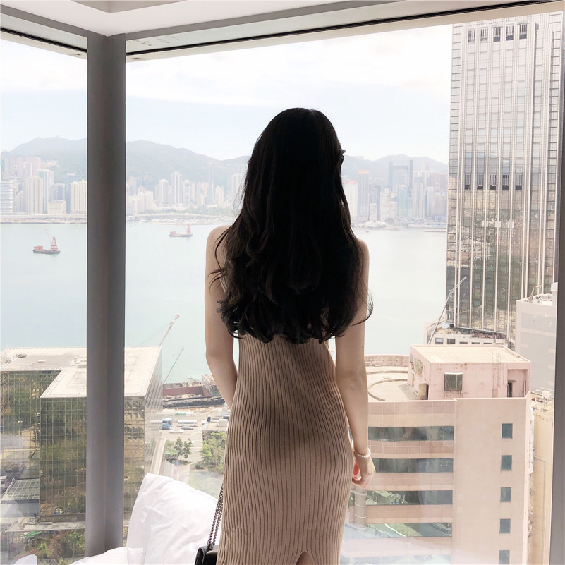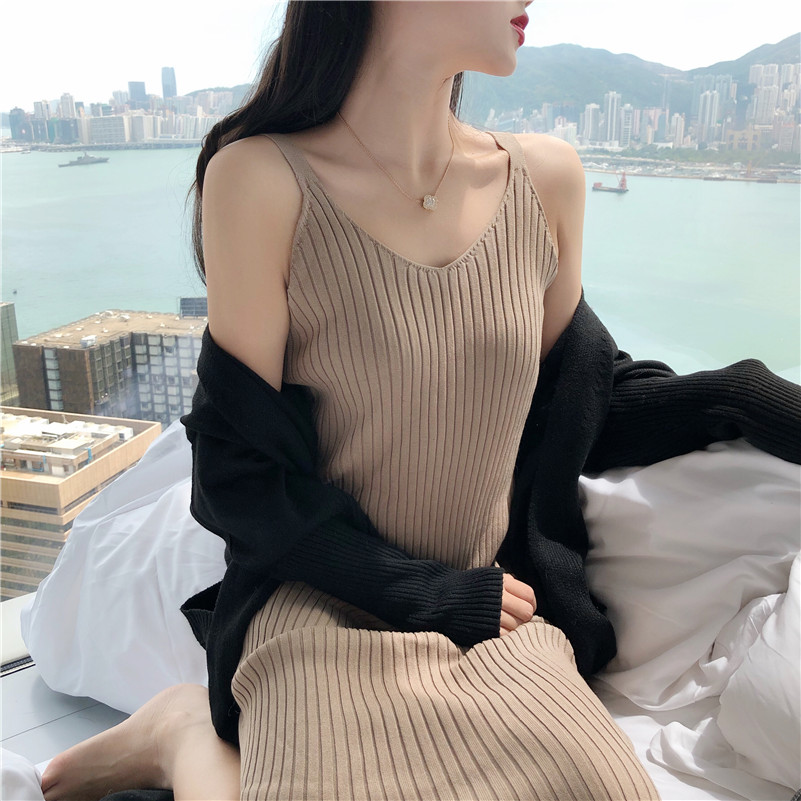 慵懶中長款加厚寬松毛衣外套針織開衫外搭吊帶修身顯瘦針織連衣裙