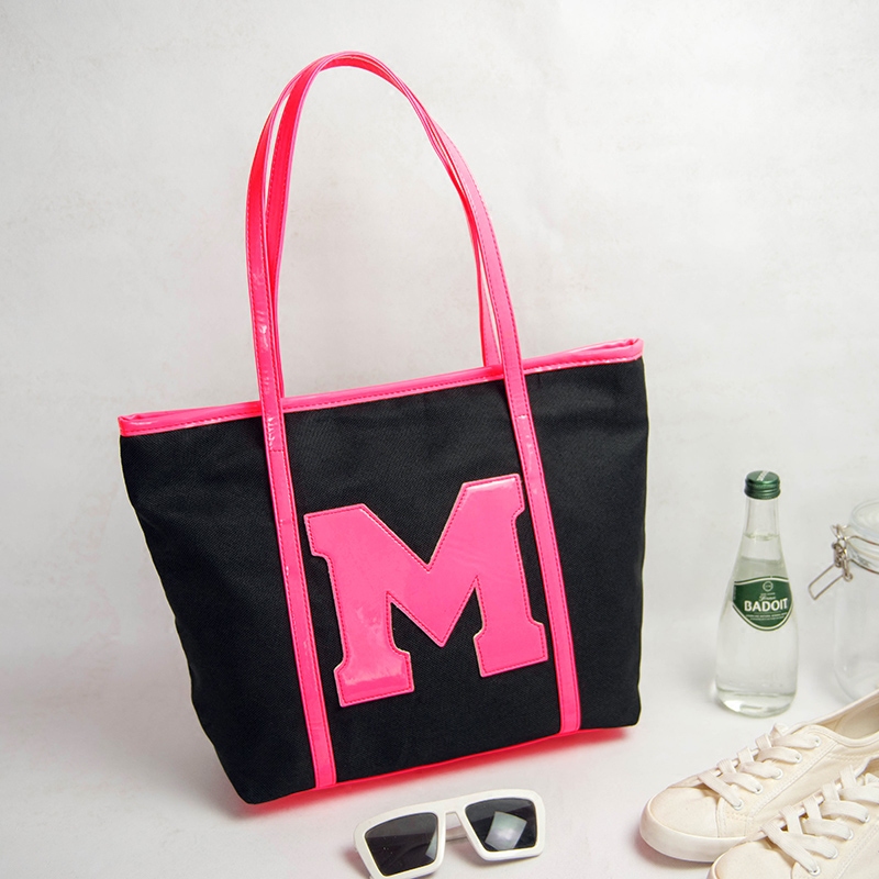 / 新款撞色字母帆布女包韓版時尚麻紋單肩大包包休閑手提包書包