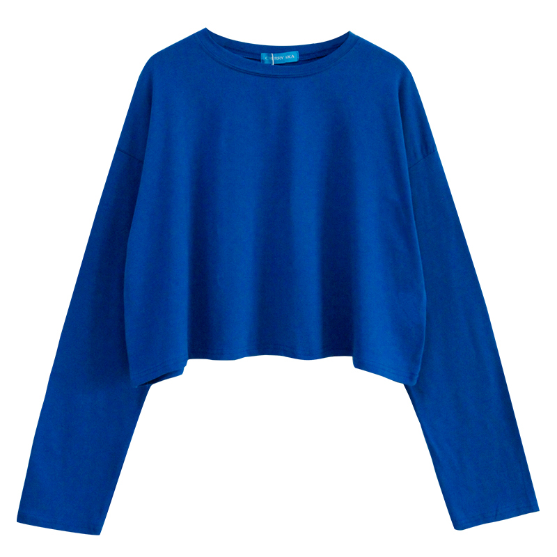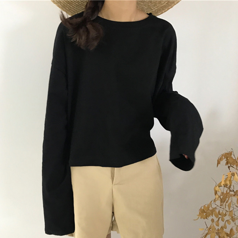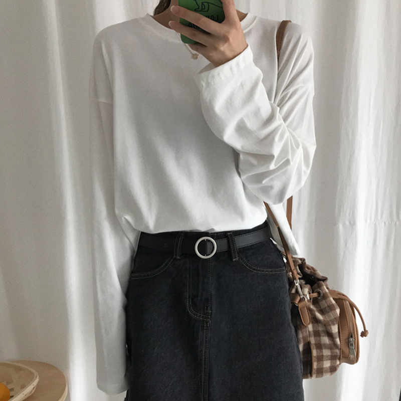 慵懶簡約純色長袖T恤秋裝女2018新款韓版寬松圓領短上衣學生體恤