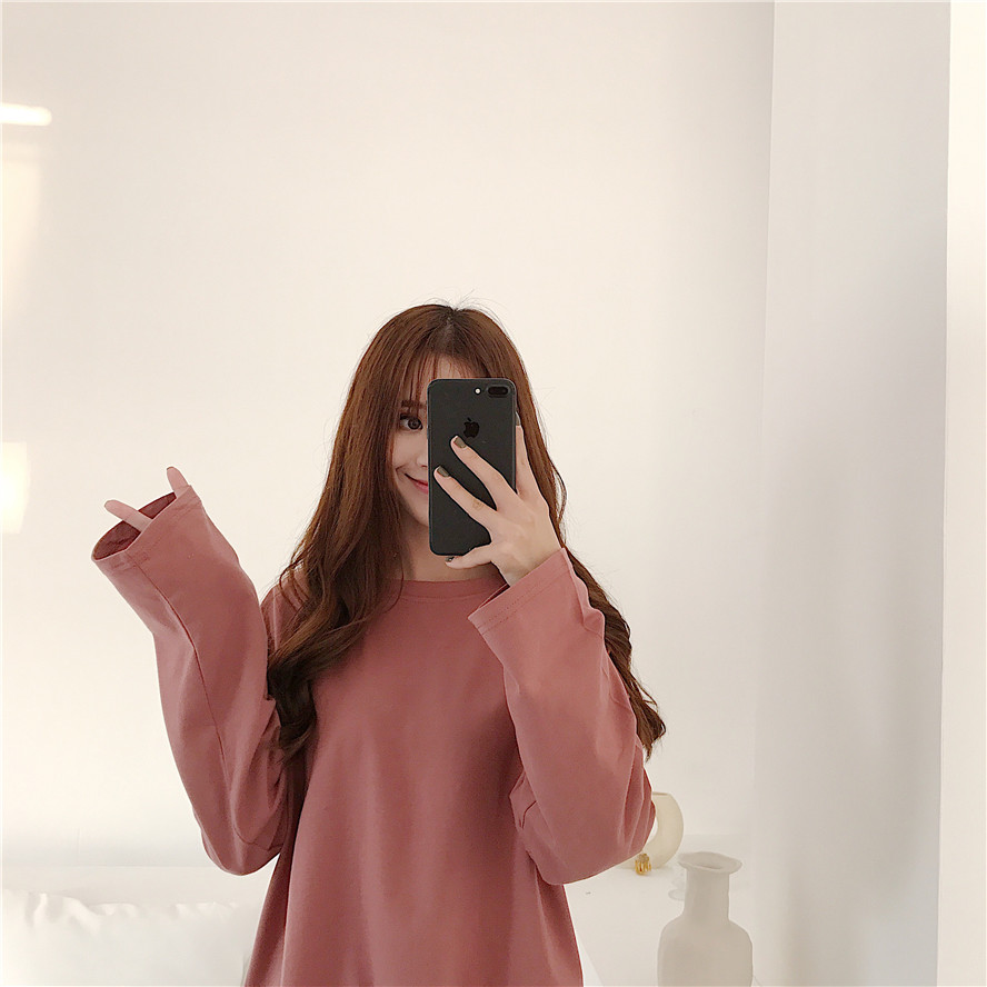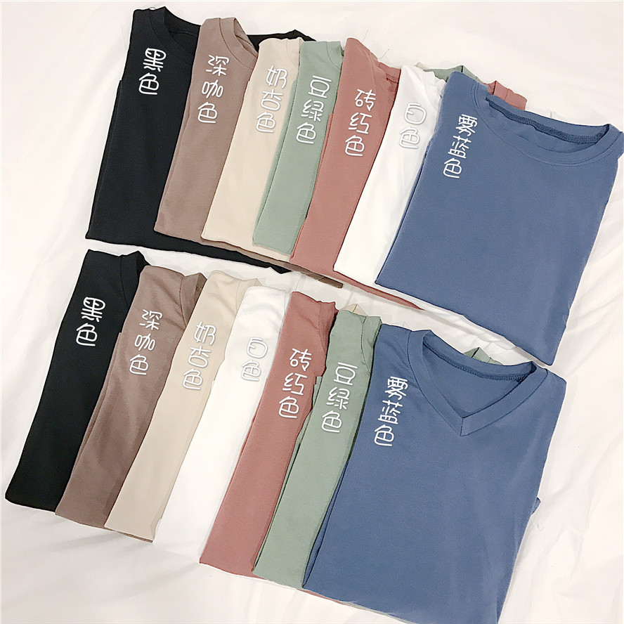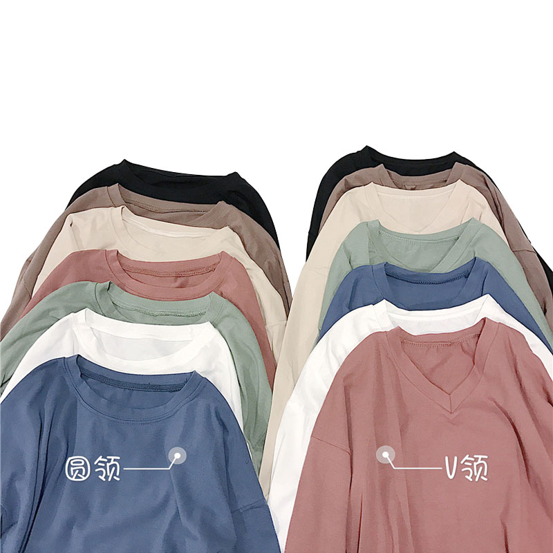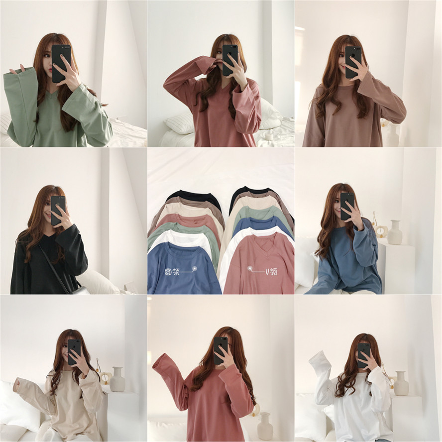 秋裝女裝韓版基礎款簡約純色圓領V領寬松長袖T恤顯瘦打底衫上衣潮