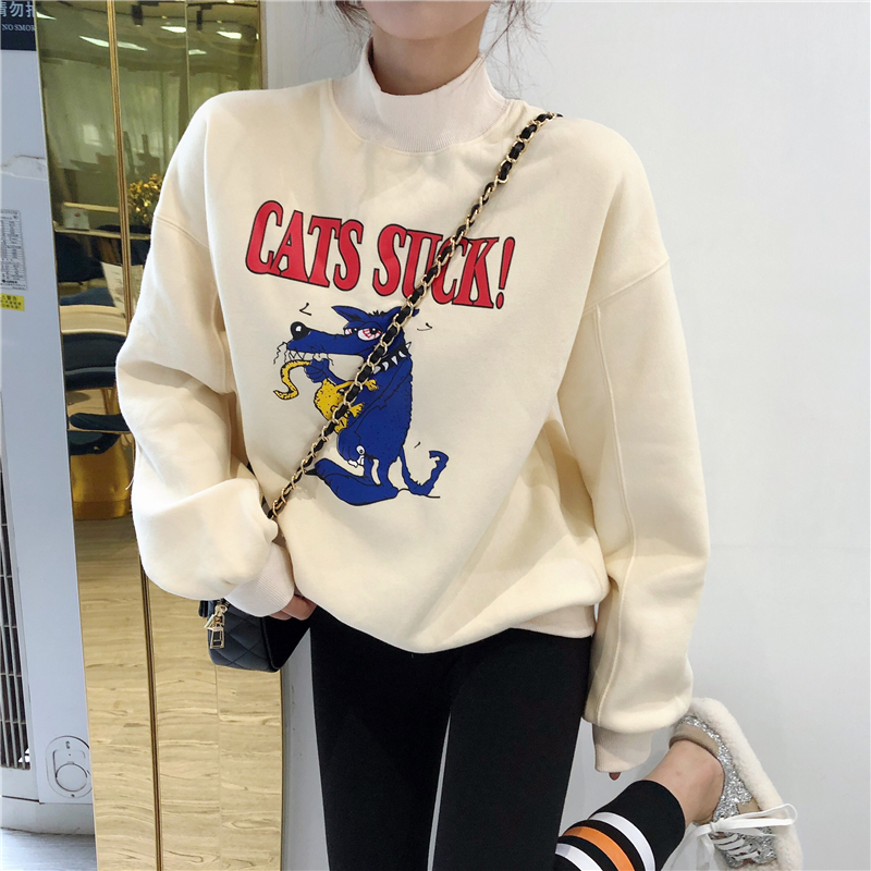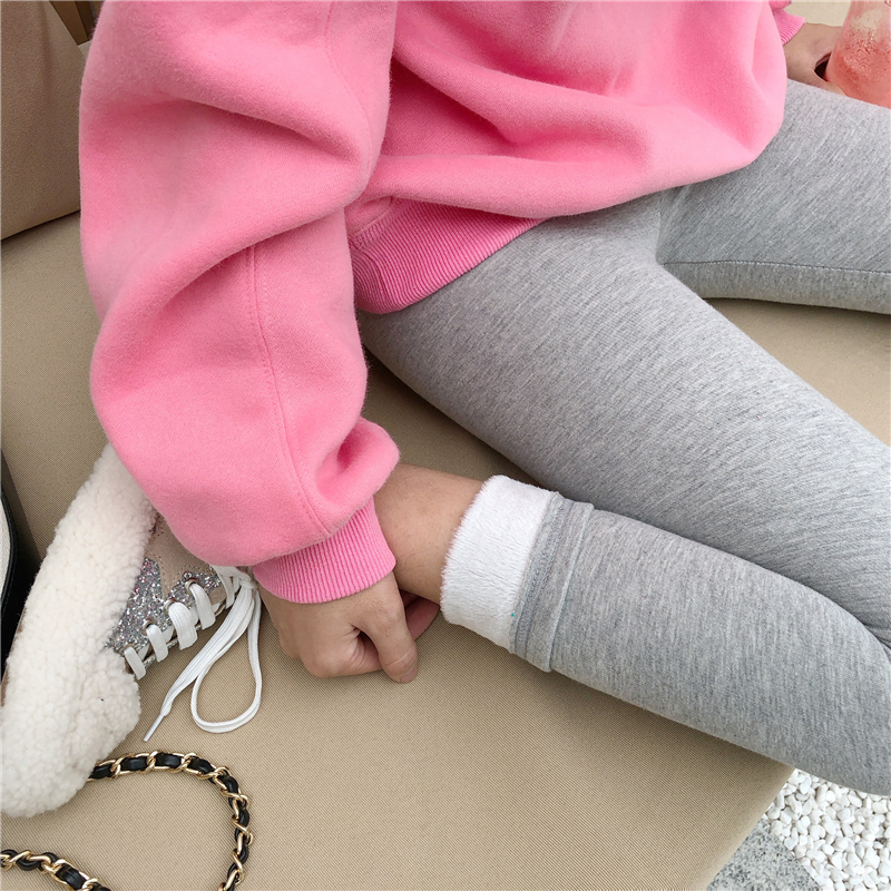 慵懶卡通中領加絨衛衣女秋冬2018新款+高腰顯瘦絨彈力條紋小腳褲