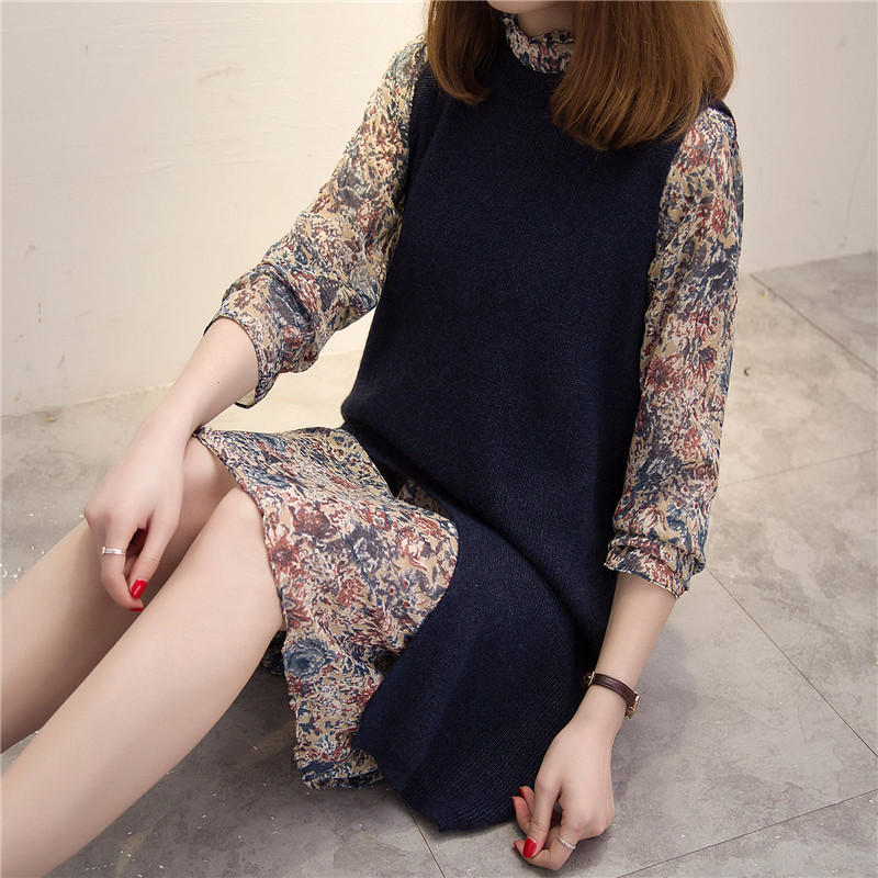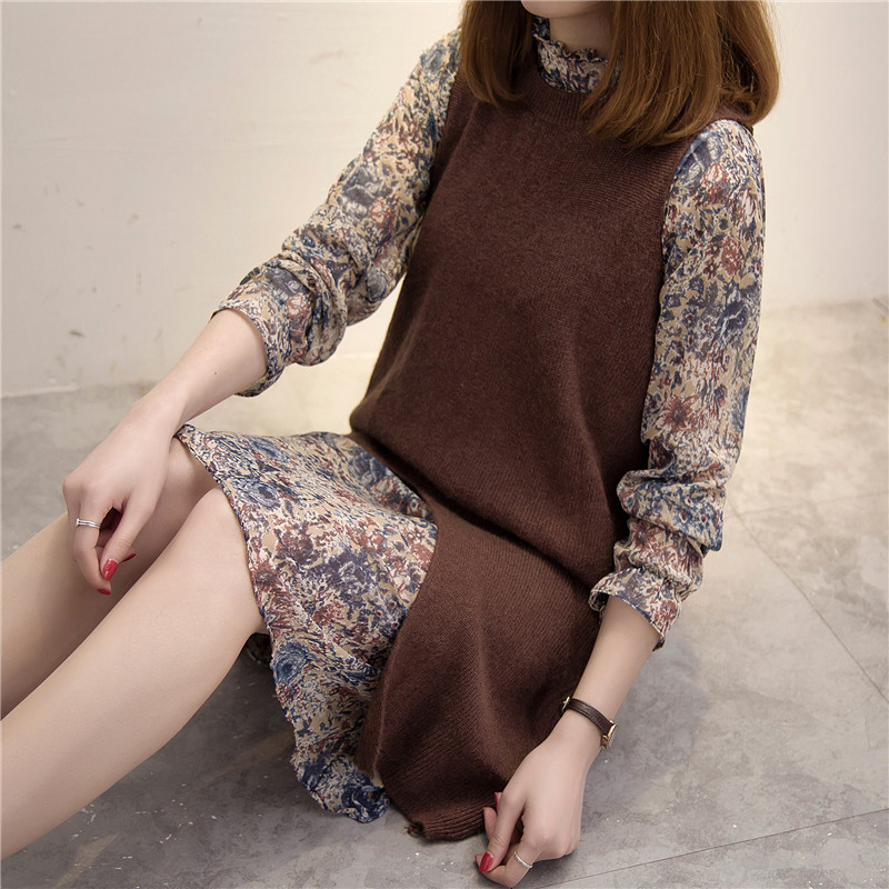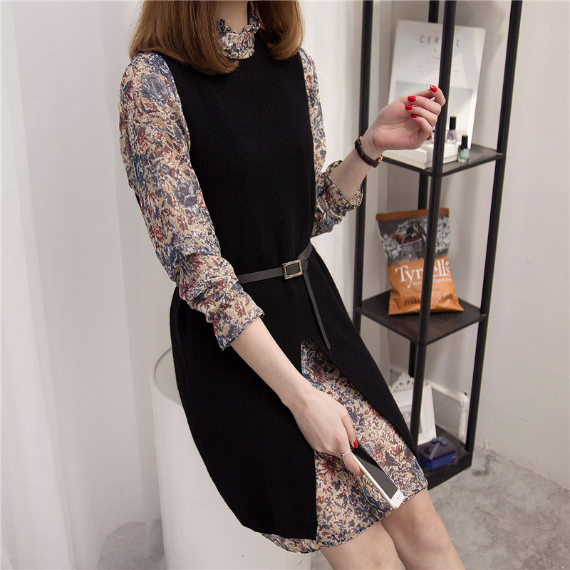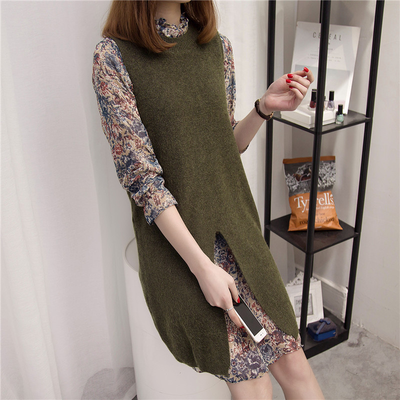 / 女裝韓版學生寬松中長款針織衫背心裙女春裝雪紡兩件套新款潮