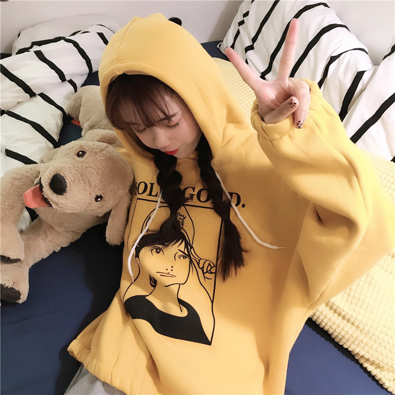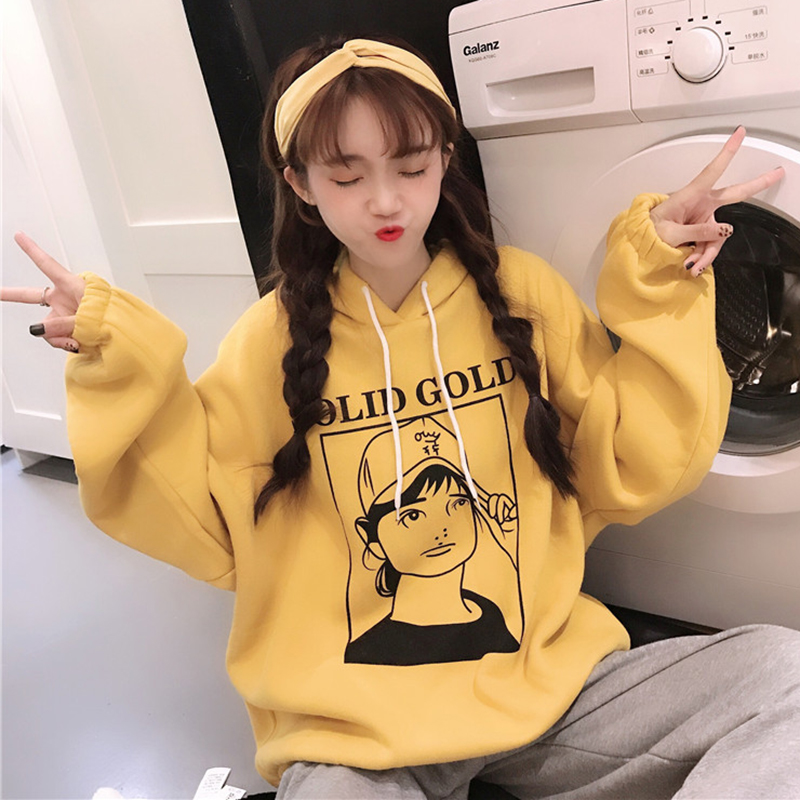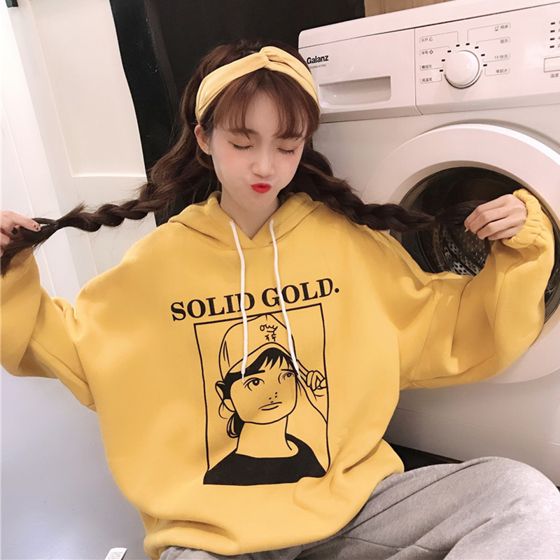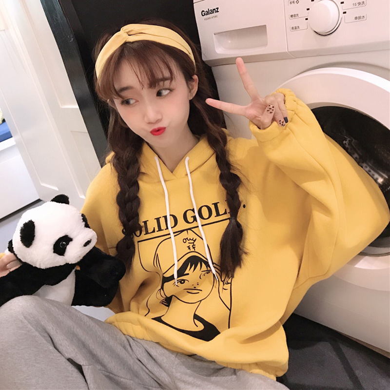 / 時尚印花連帽衛衣2018新款女秋冬裝港風寬松加絨外套休閑長袖上衣