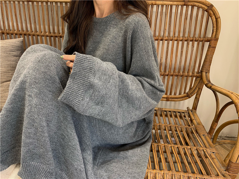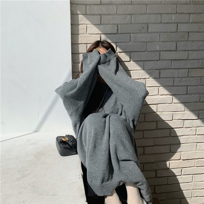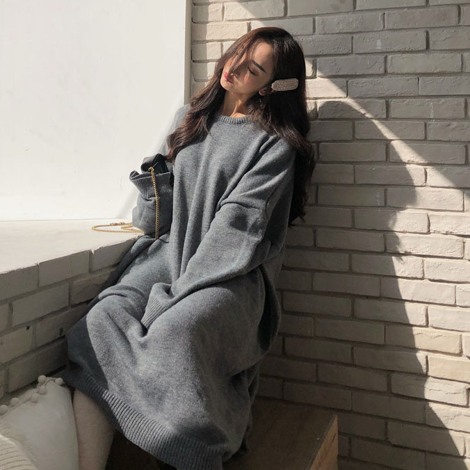 / 慵懶風套頭毛衣女2018新款秋冬韓版寬松百搭純色針織毛衣連衣裙女