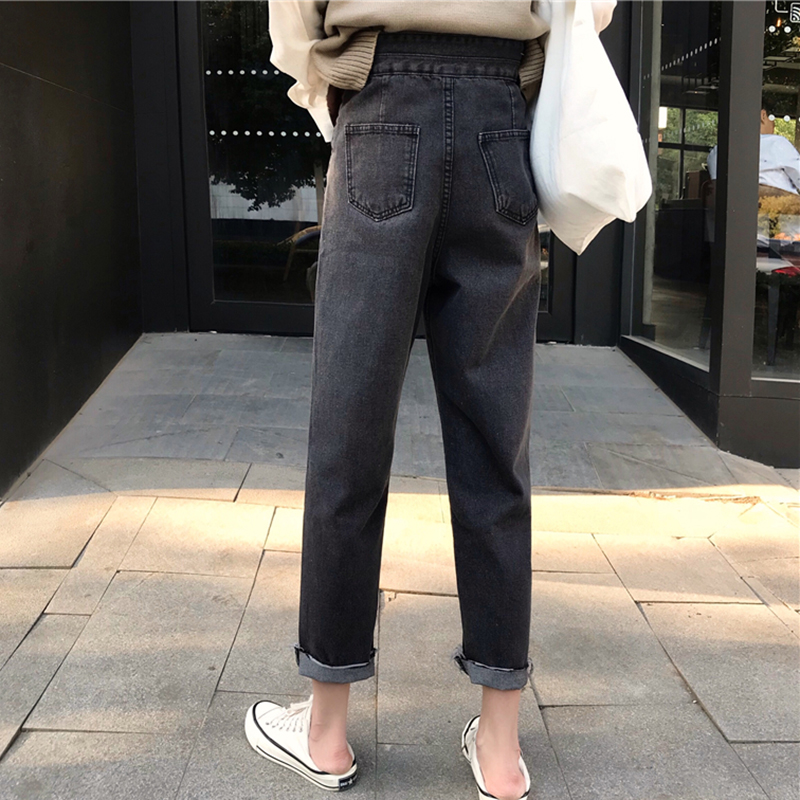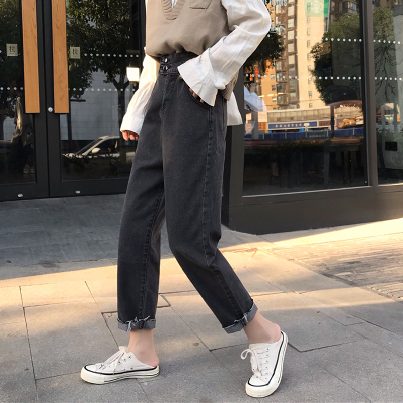 時尚牛仔褲秋裝女2018新款韓版高腰闊腿九分褲學生簡約直筒褲子潮