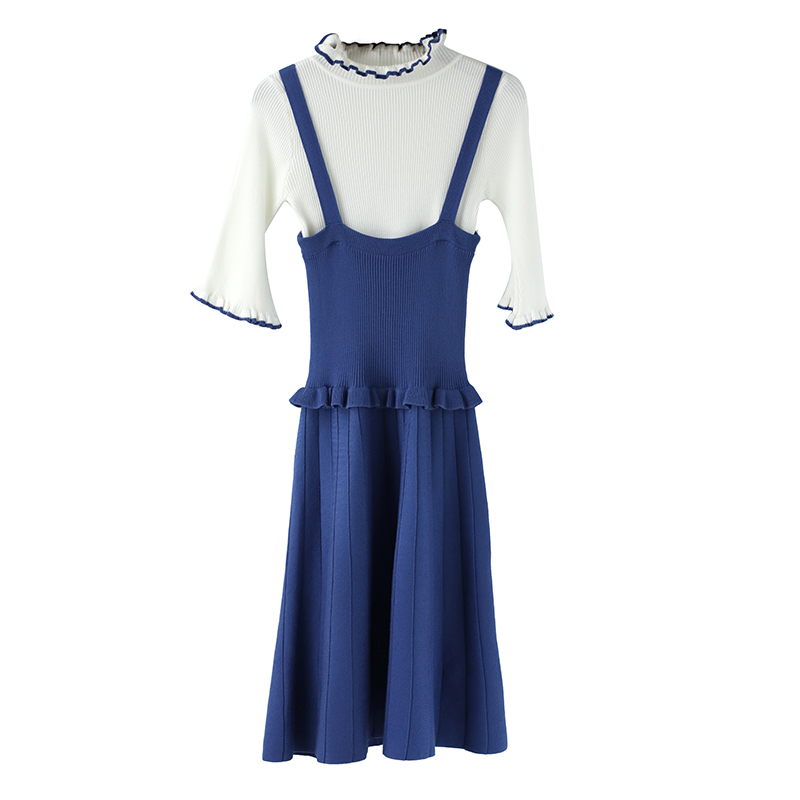 / 歐洲站2018秋季新款修身半袖針織上衣打底衫吊帶連衣裙兩件套套裝