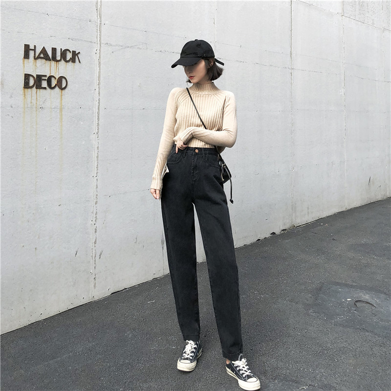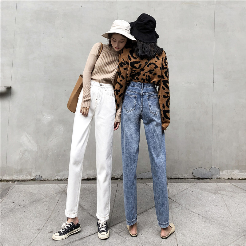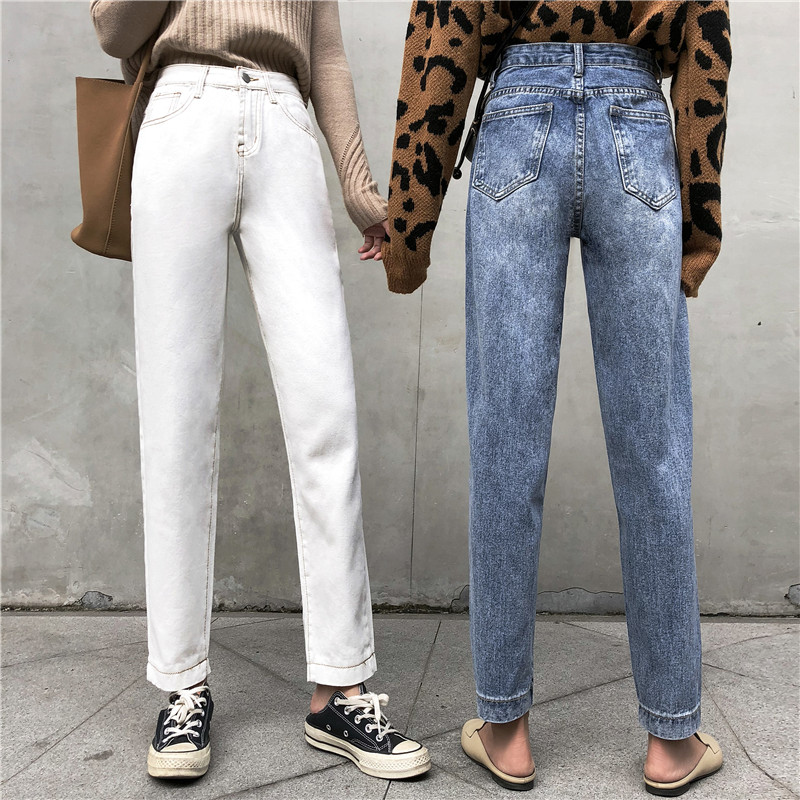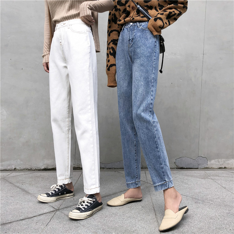 秋裝女2018新款復古港味九分褲學生韓版寬松高腰原宿直筒牛仔褲女