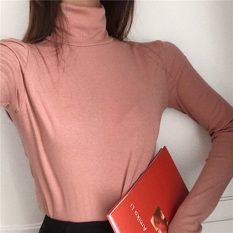 / 港味修身顯瘦打底衫女秋冬裝新款韓版高領黑色長袖上衣時尚T恤潮