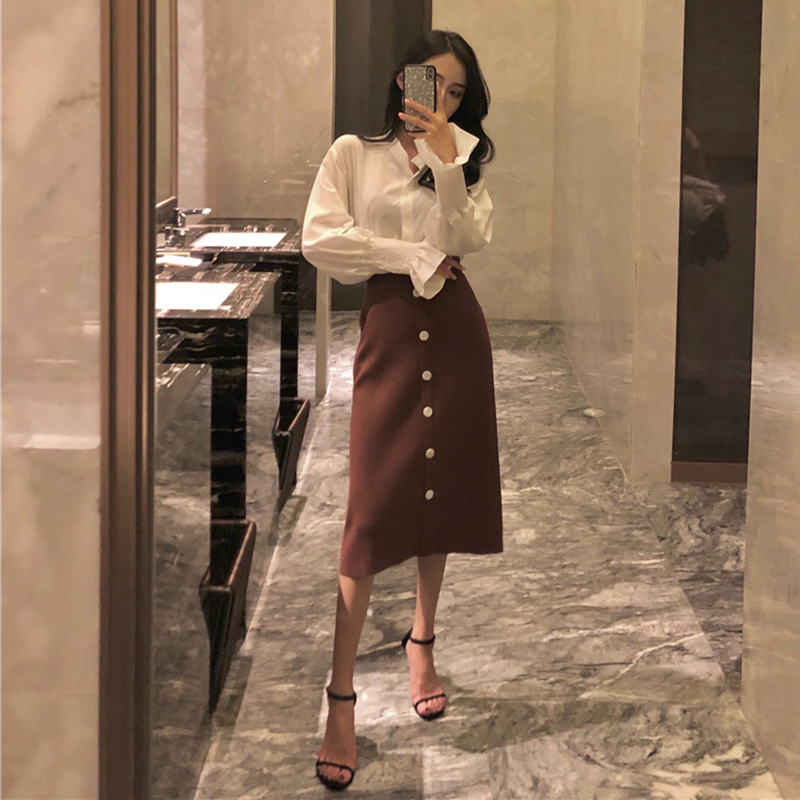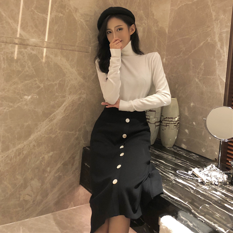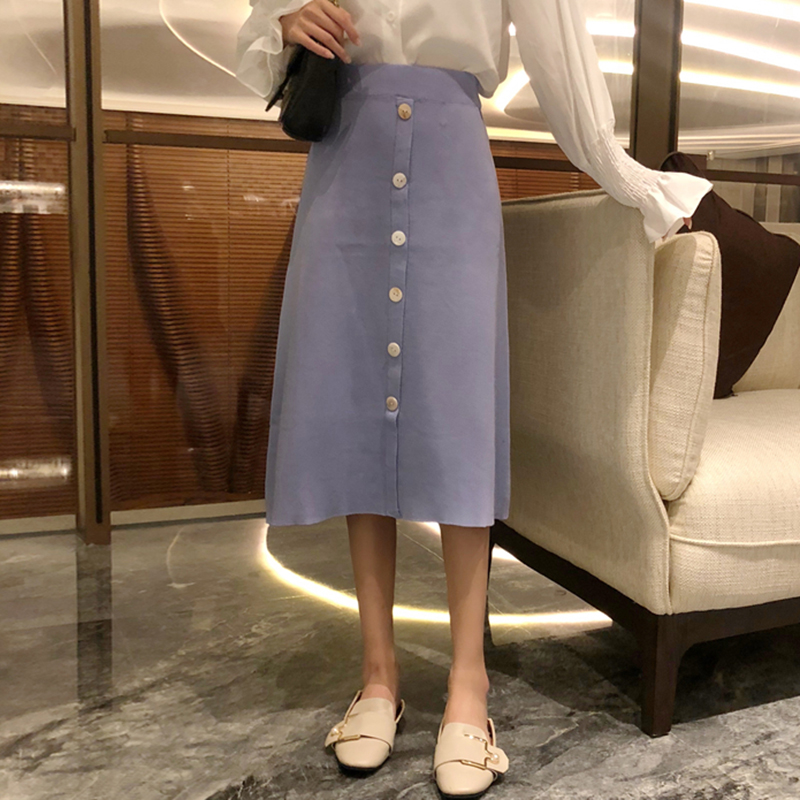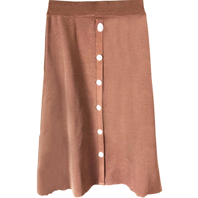 A字黑裙子秋裝女2018新款港味復古紐扣針織半身裙氣質高腰中長裙